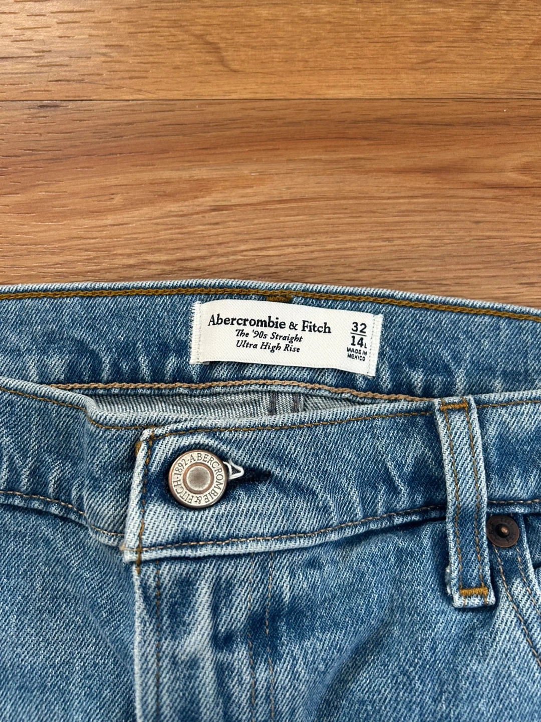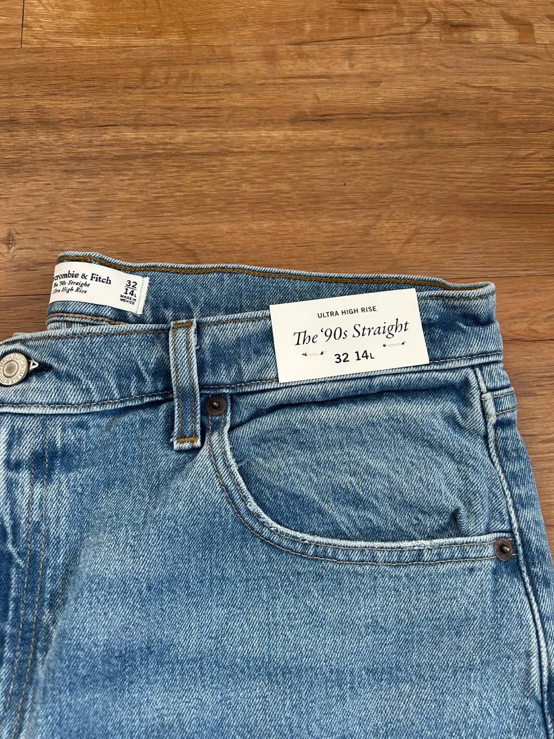 These are Abercrombie & Fitch The '90s Straight jeans in size 32 14L. They have an ultra high rise and are in great condition!