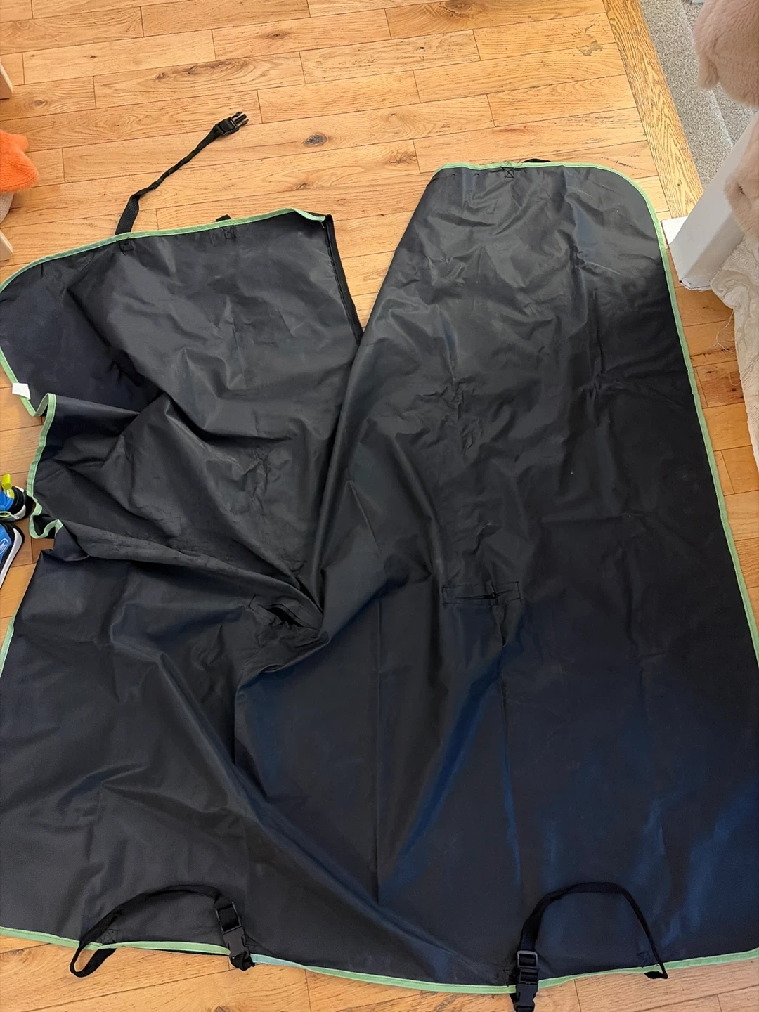 Selling a black pet car seat cover with adjustable straps in good condition. Great for keeping your car clean while travelling with your furry friend!