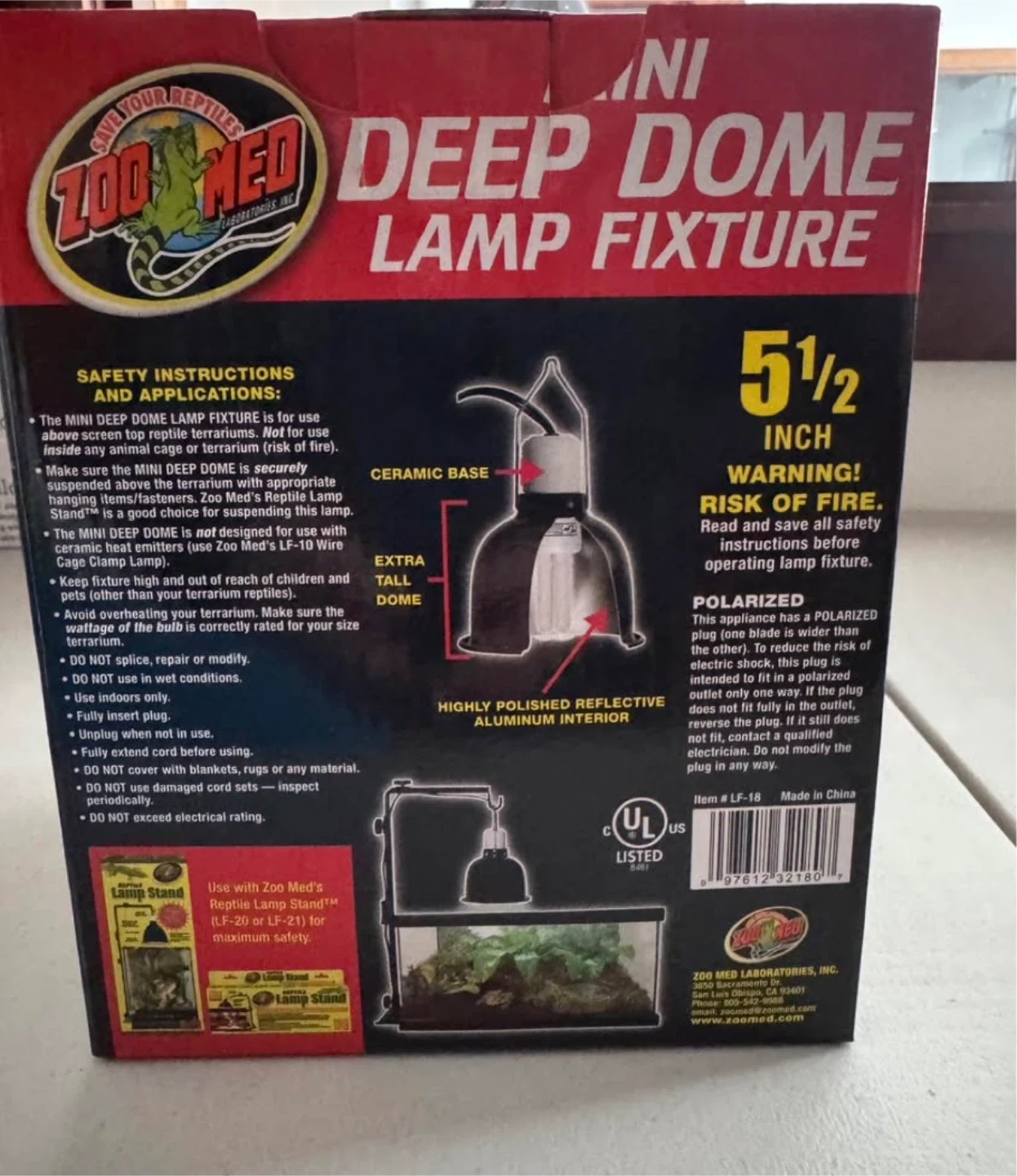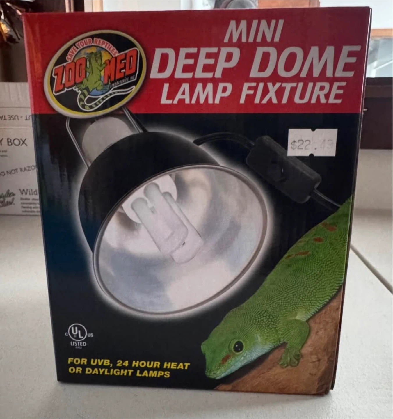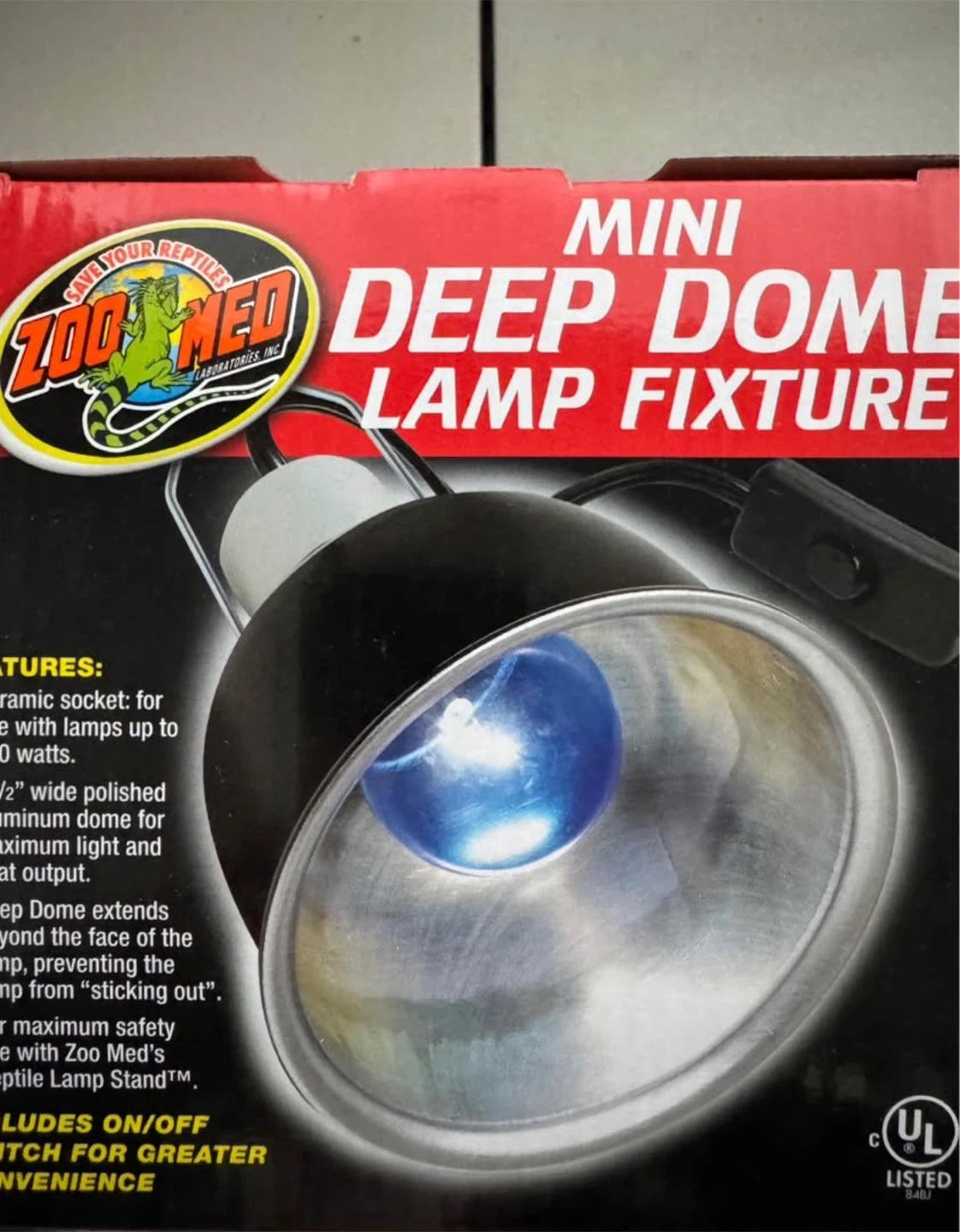 I have a brand new Zoo Med Mini Deep Dome Lamp Fixture for sale! It's perfect for UVB, 24-hour heat, or daylight lamps. The fixture has a ceramic base and a highly polished reflective aluminum dome for maximum light and heat output. It also includes an on/off switch for greater convenience. The original price was $22.49. The dome is 5 1/2 inches wide.