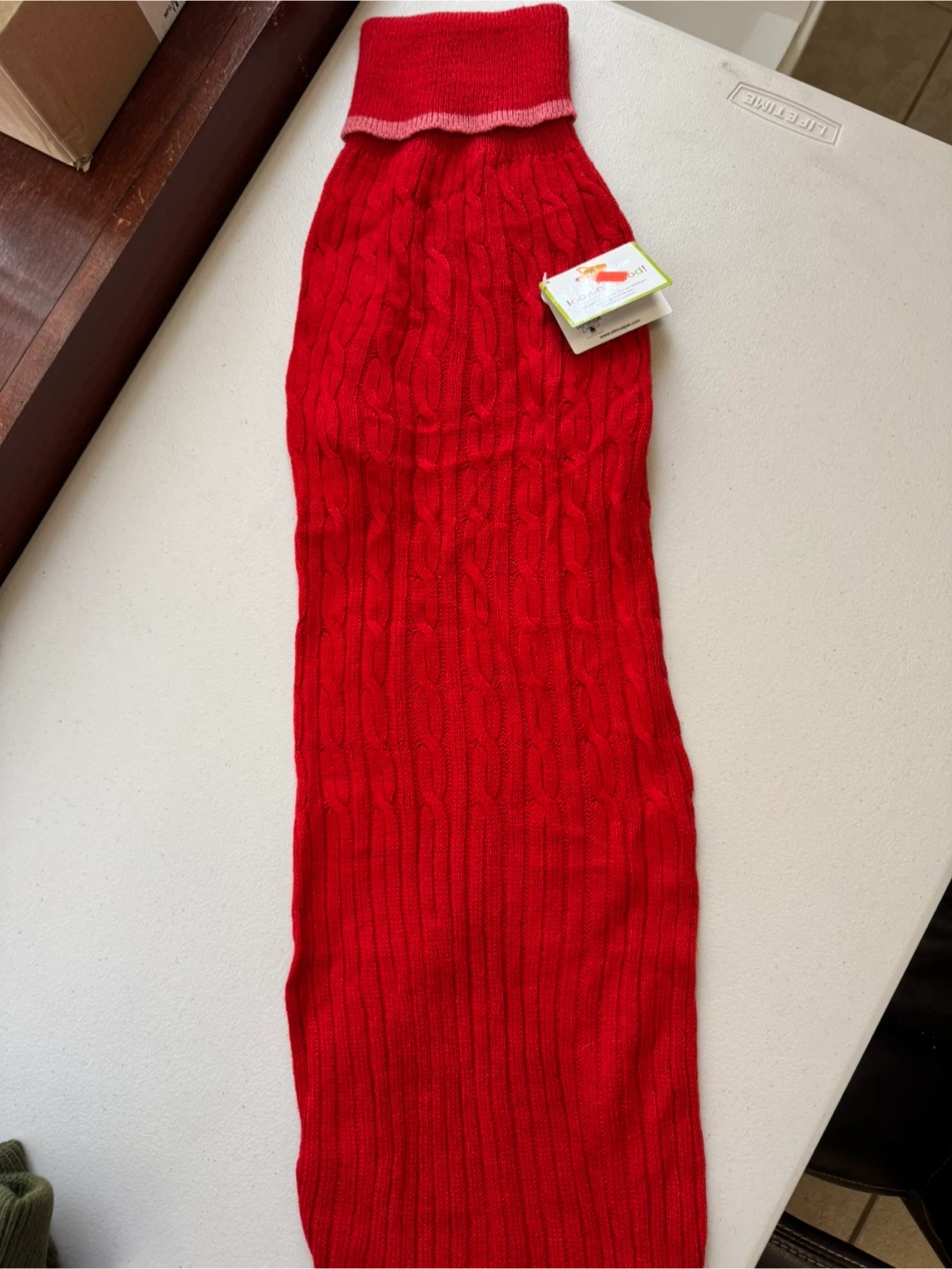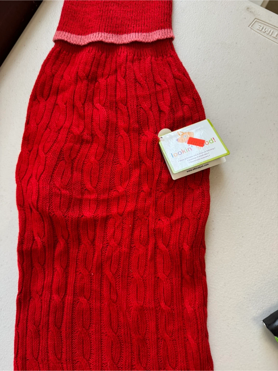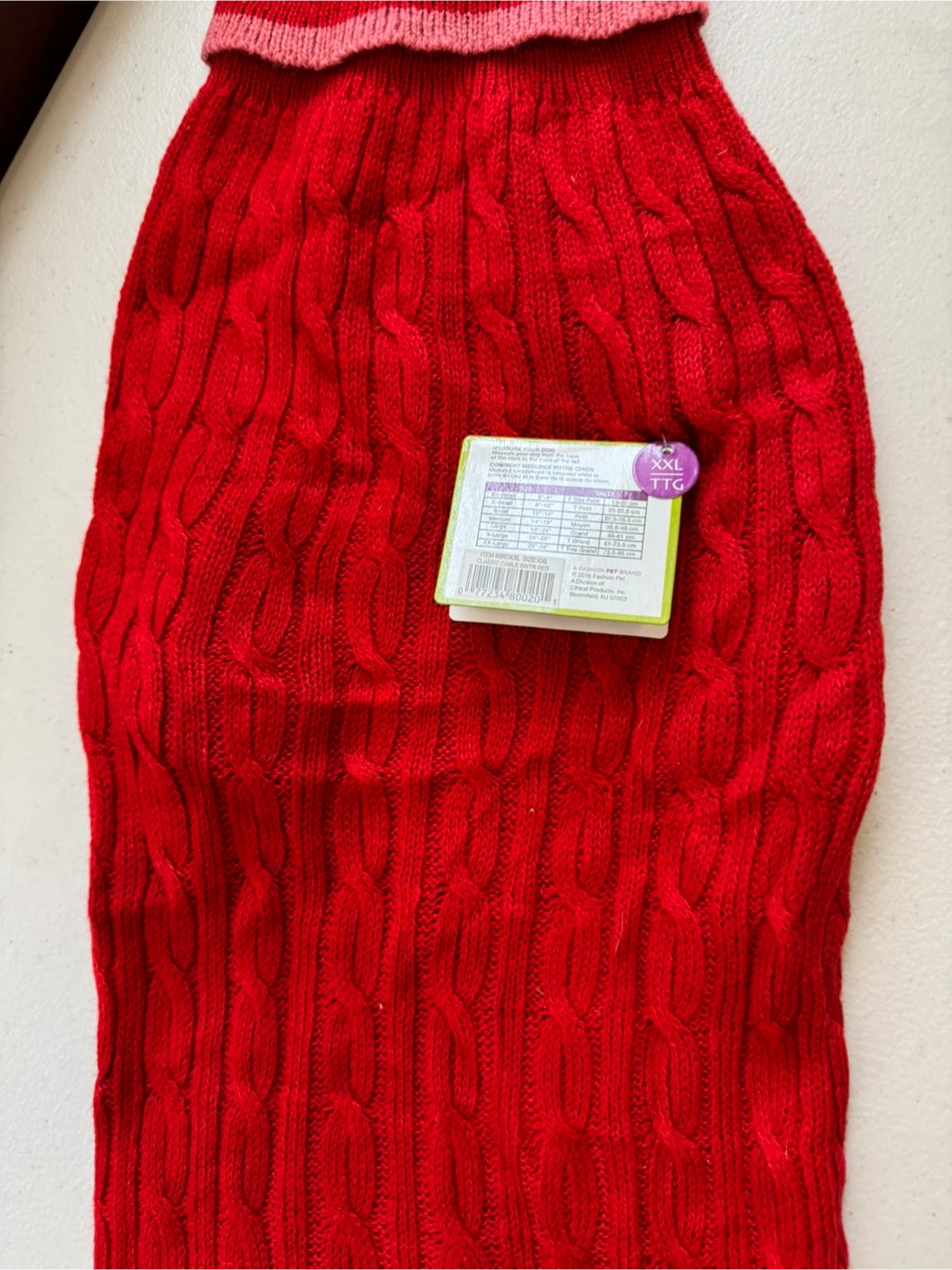 Selling a brand new Lookin' Good! dog sweater in size XXL. It's a vibrant red color and has a cozy cable knit design to keep your furry friend warm and stylish this winter