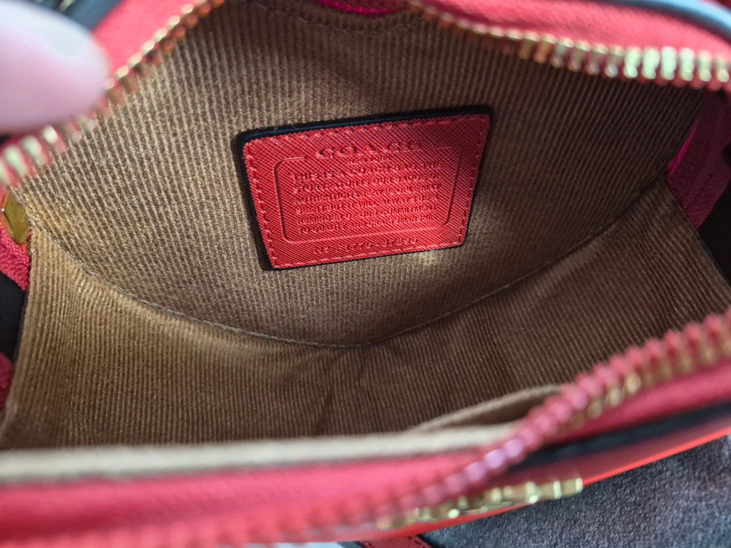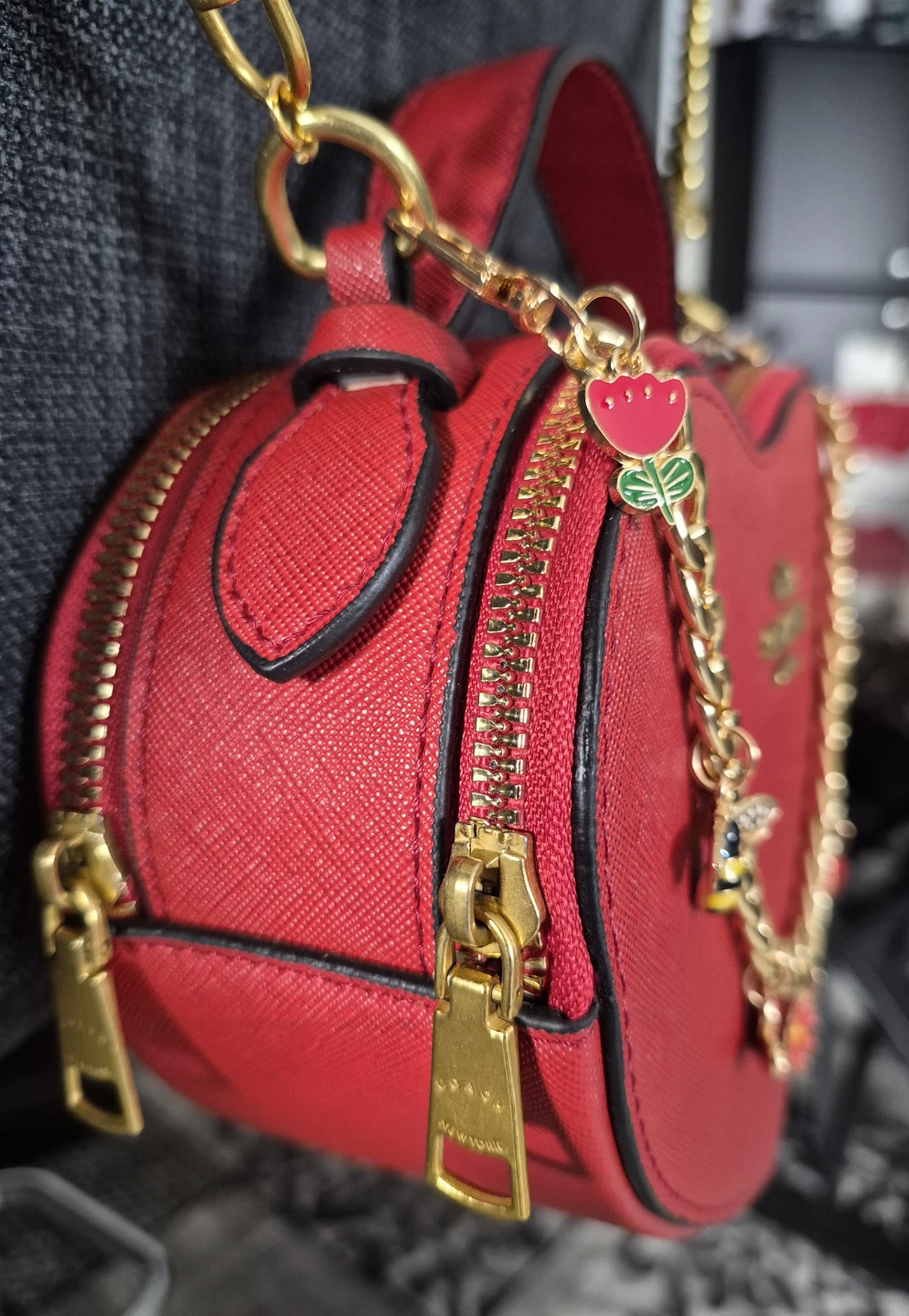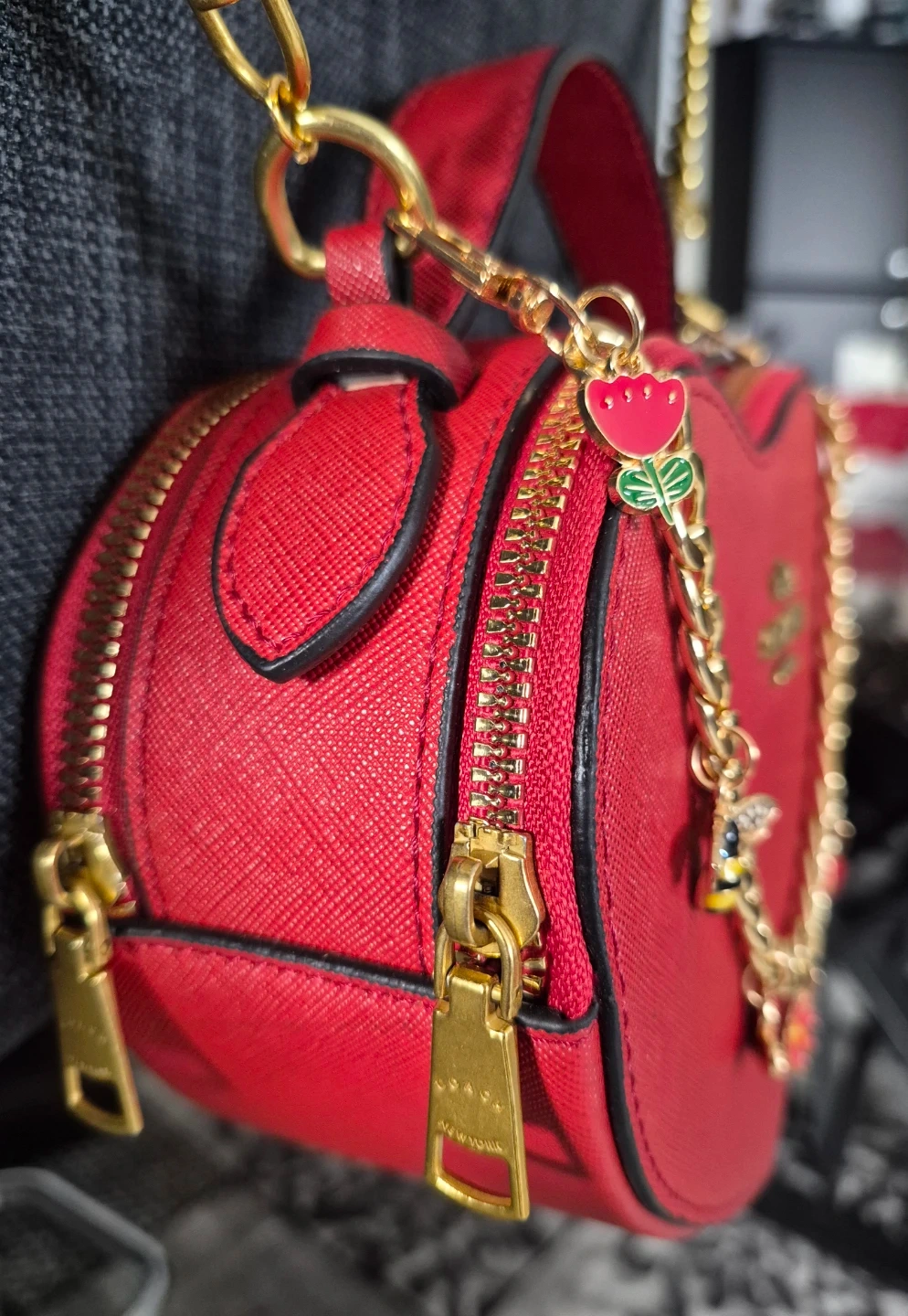 Selling a super cute Coach heart-shaped crossbody bag in red! It comes with a gold chain and adorable charms. Perfect for adding a pop of fun to any outfit