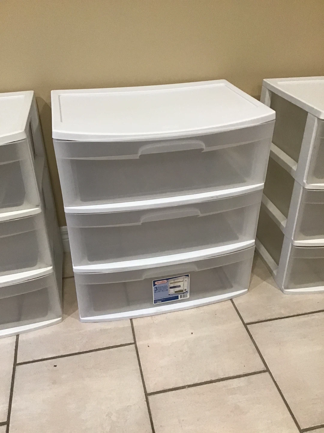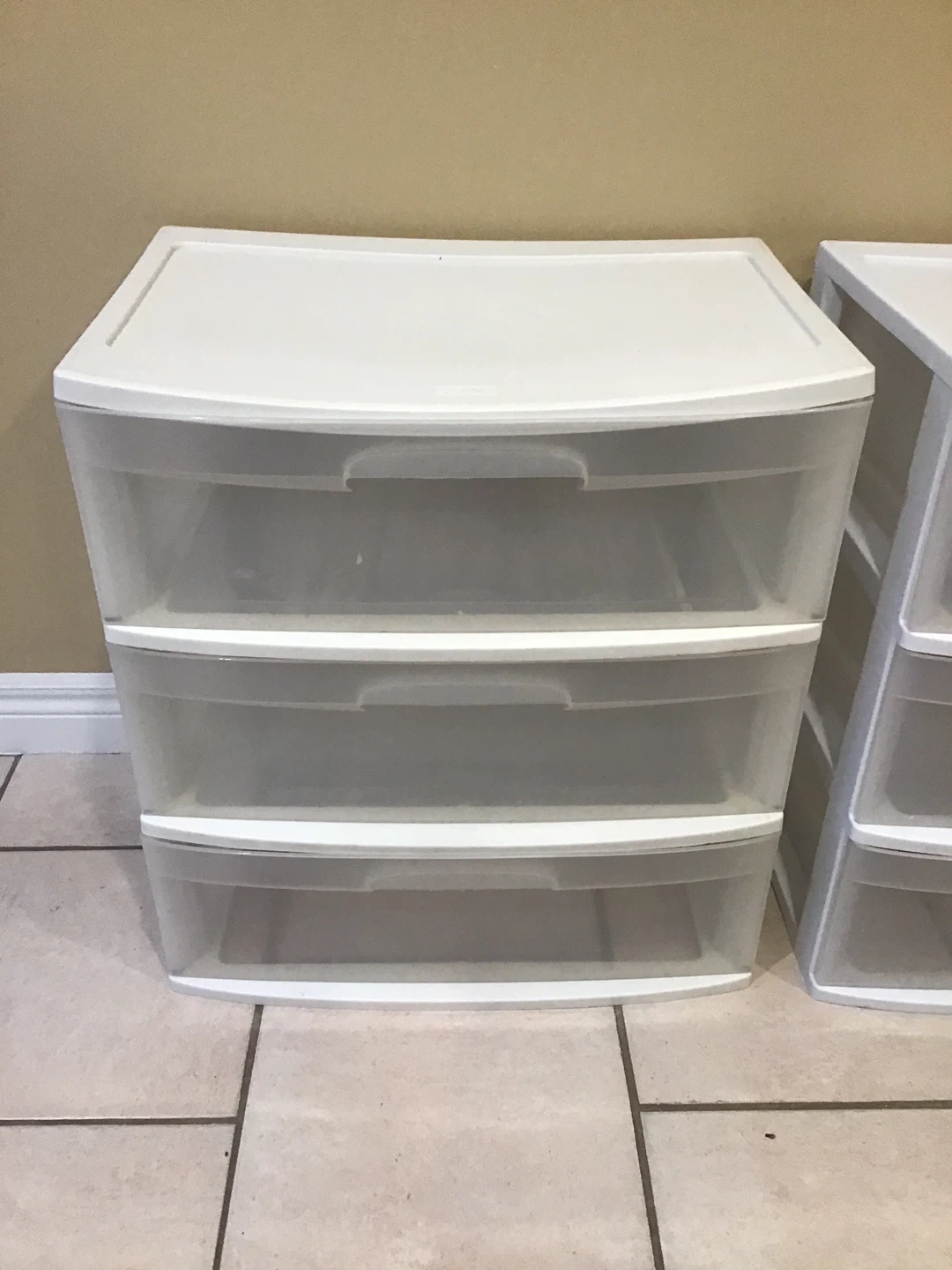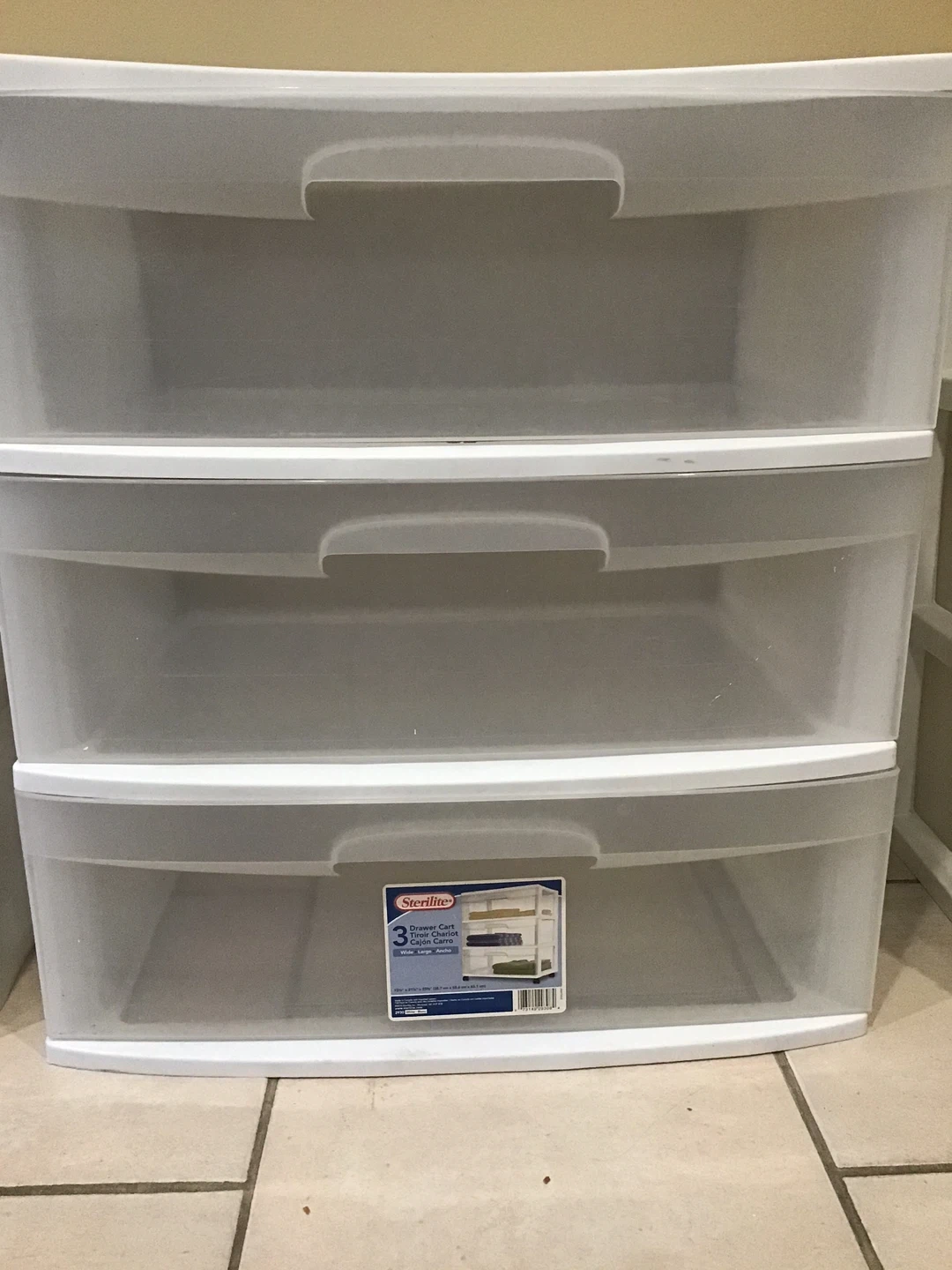 Selling a Sterilite 3-drawer wide cart in white! Great for organizing your space. It's in good condition and ready to use.