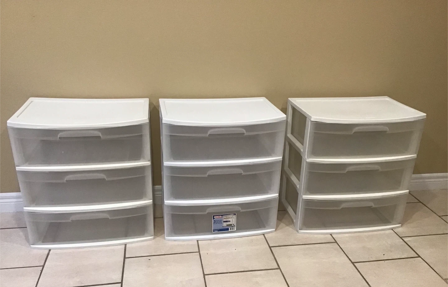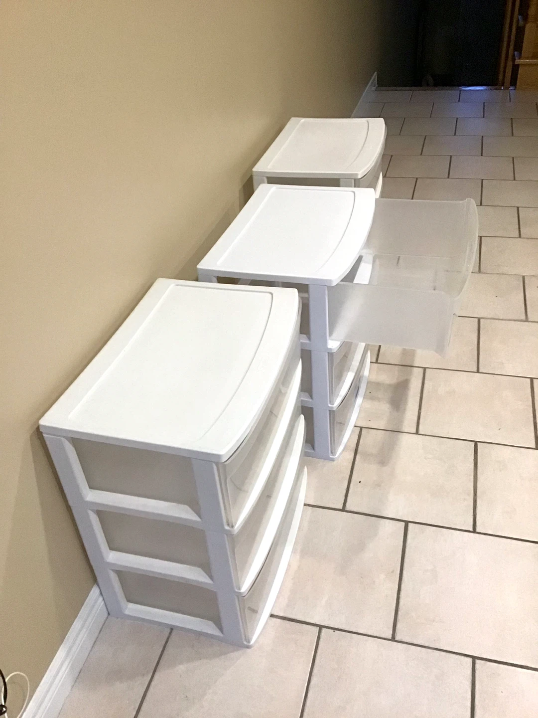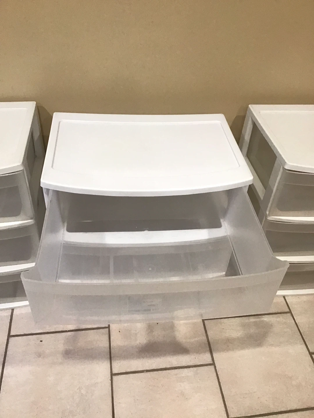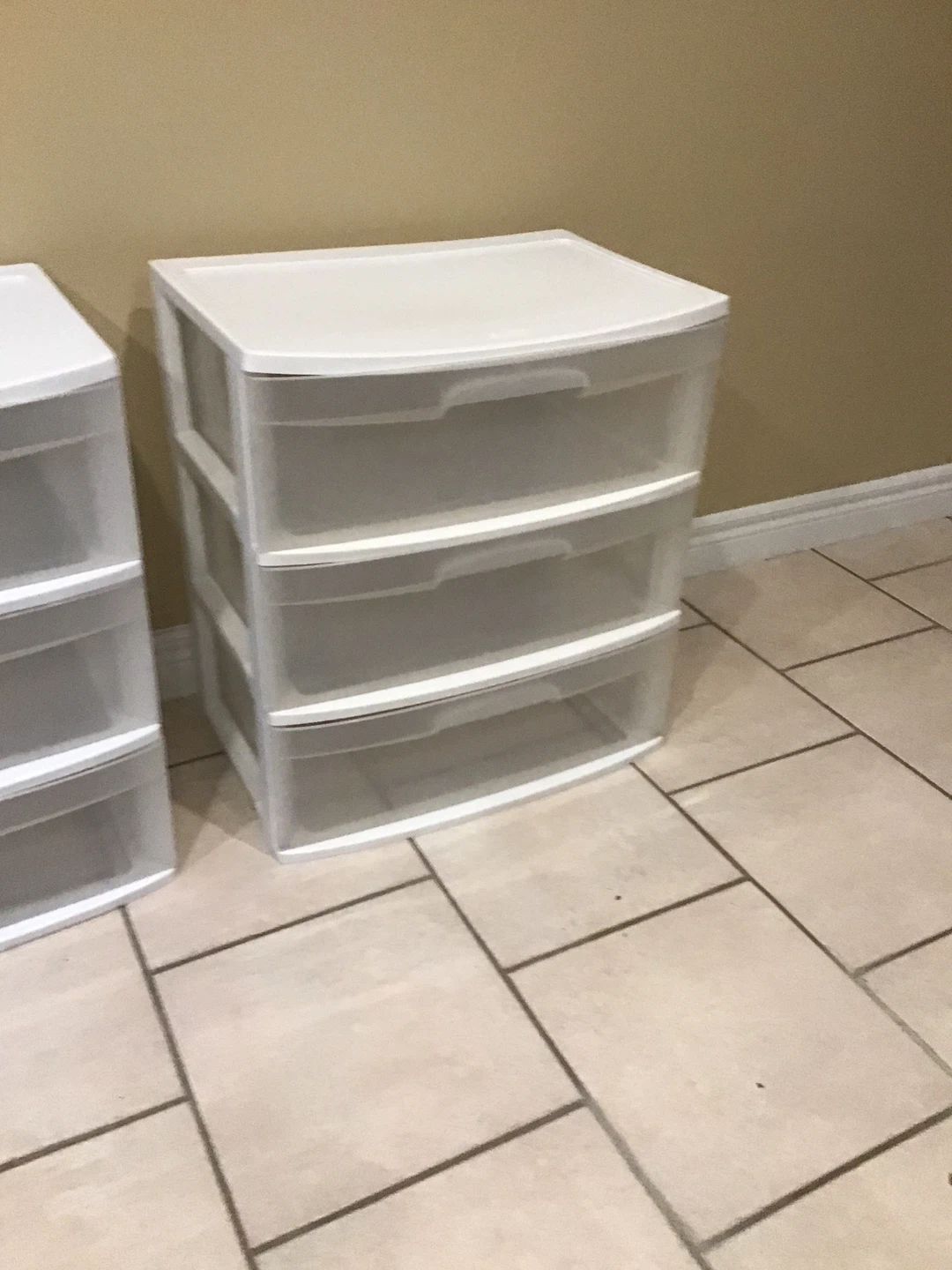Selling a Sterilite 3-drawer wide cart in white! Great for organizing your space. It's in good condition and ready to use.