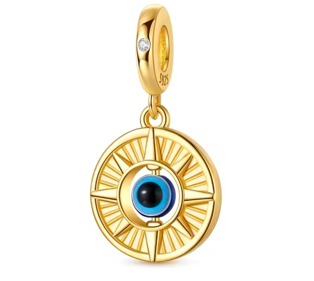 Selling a beautiful S925 gold evil eye compass charm! It's in great condition and would make a lovely addition to any charm bracelet or necklace. The charm features a detailed compass design with an eye in the centre. Perfect for adding a touch of protection and style to your look