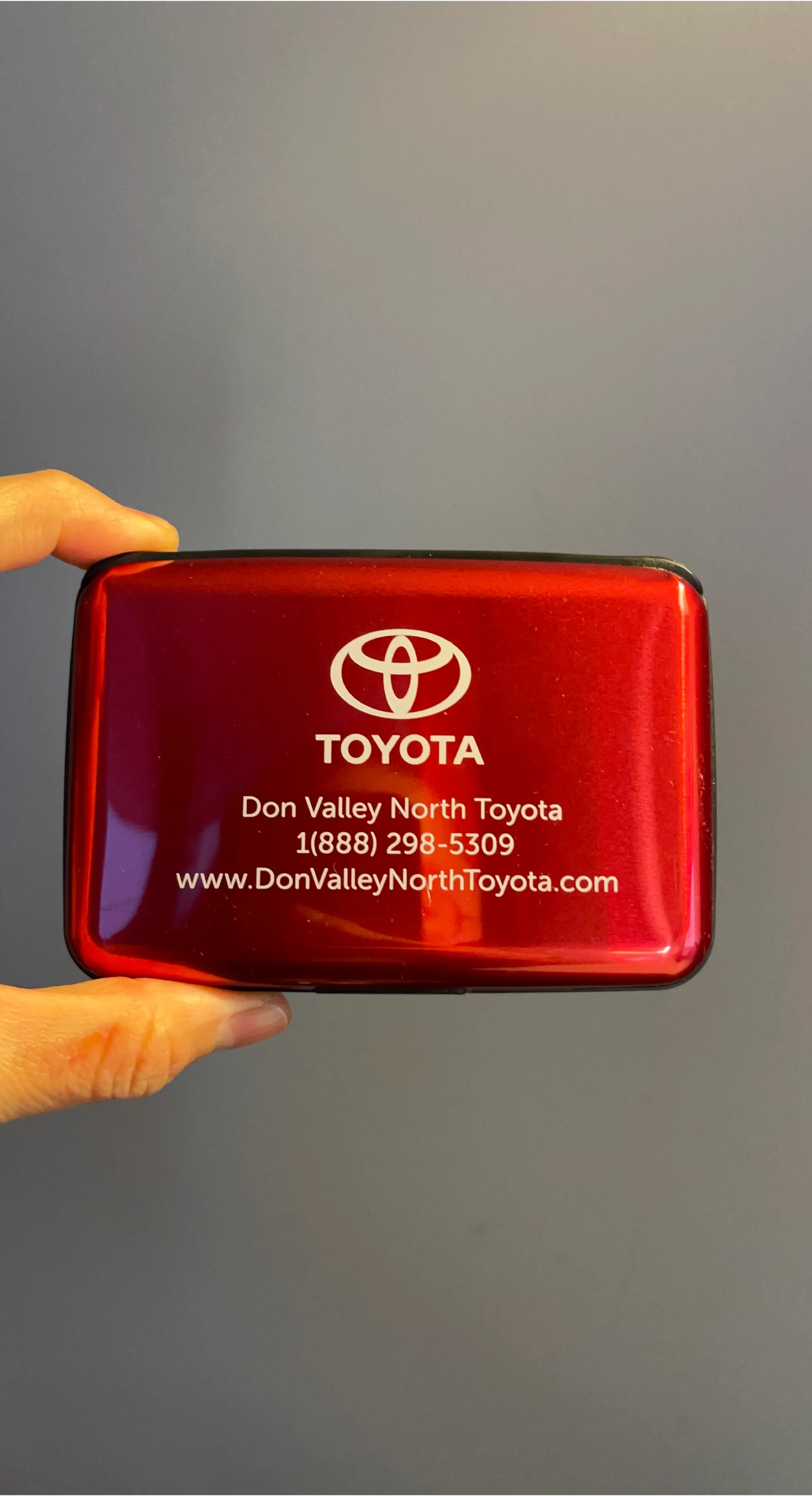 Free listing a red Toyota card holder and charger from Don Valley North Toyota. It's in great condition and perfect for keeping your cards organized. It has a capacity of 1800mAh and power of 6.7Wh.