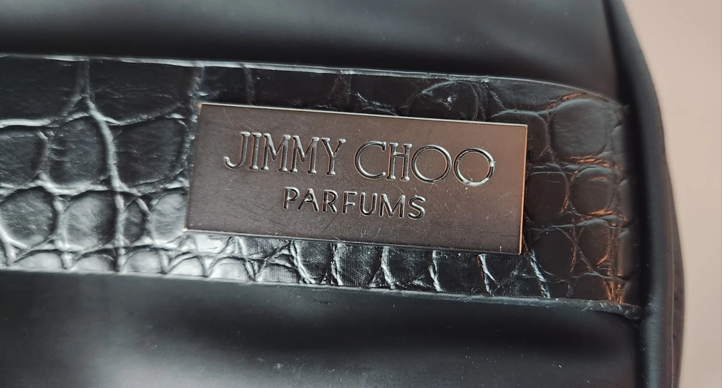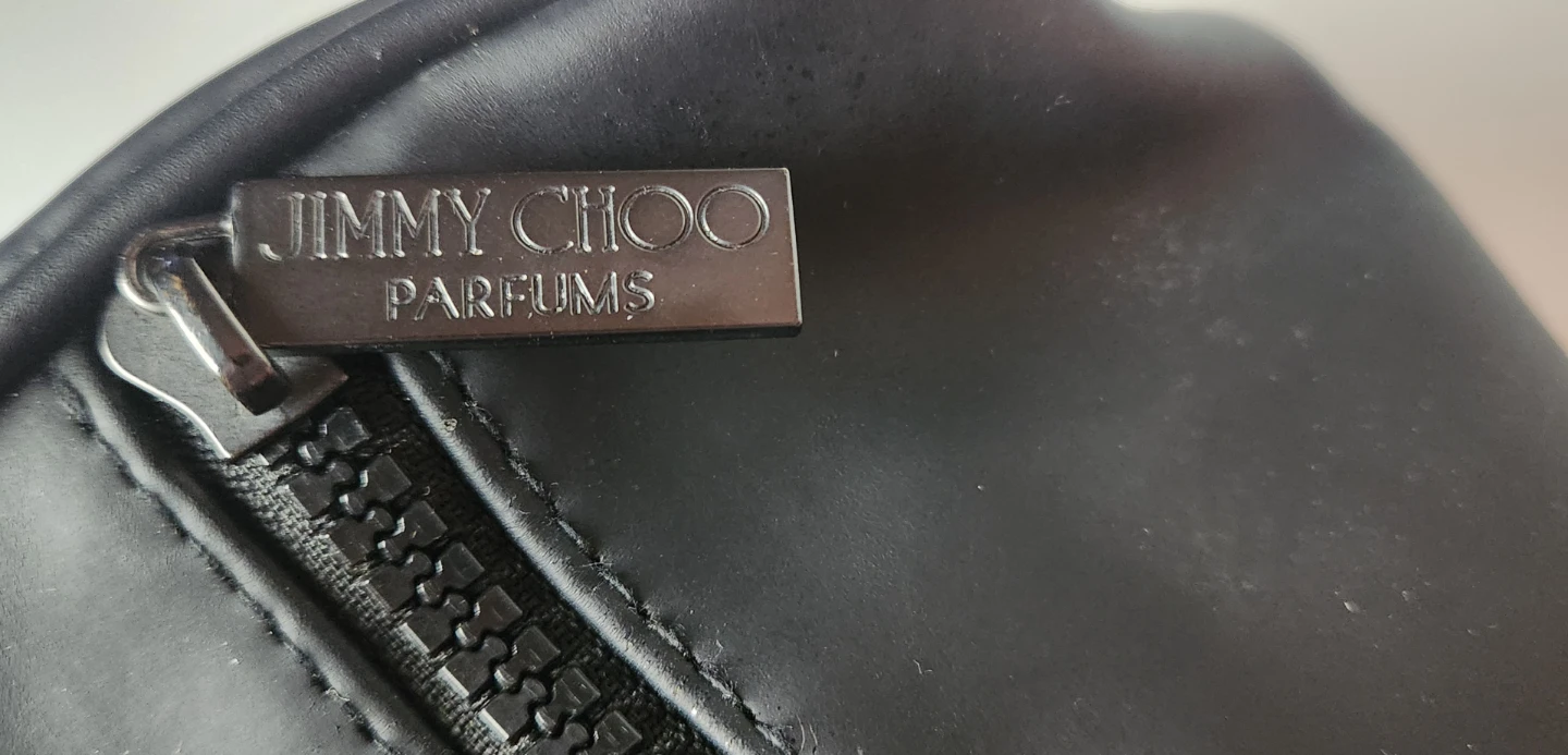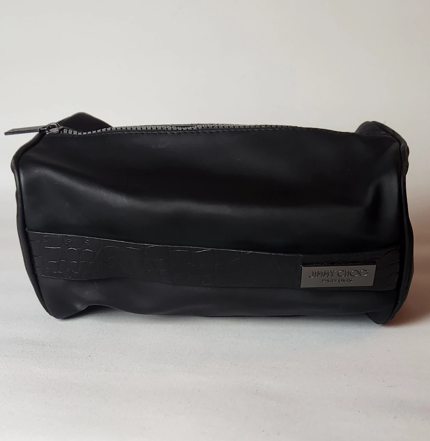 Here's a stylish black toiletry bag from Jimmy Choo Parfums! It's in great condition and perfect for travel or organizing your cosmetics