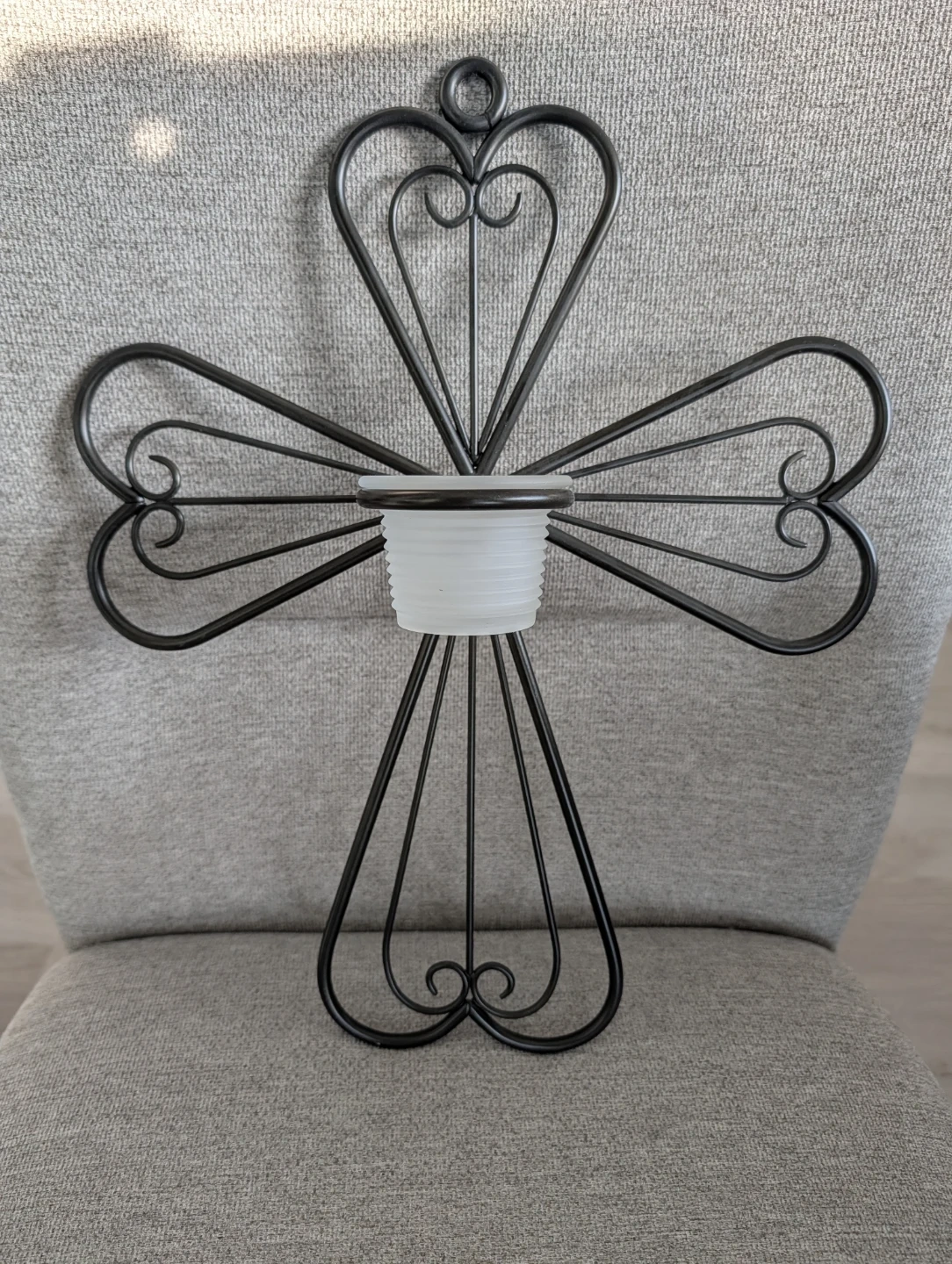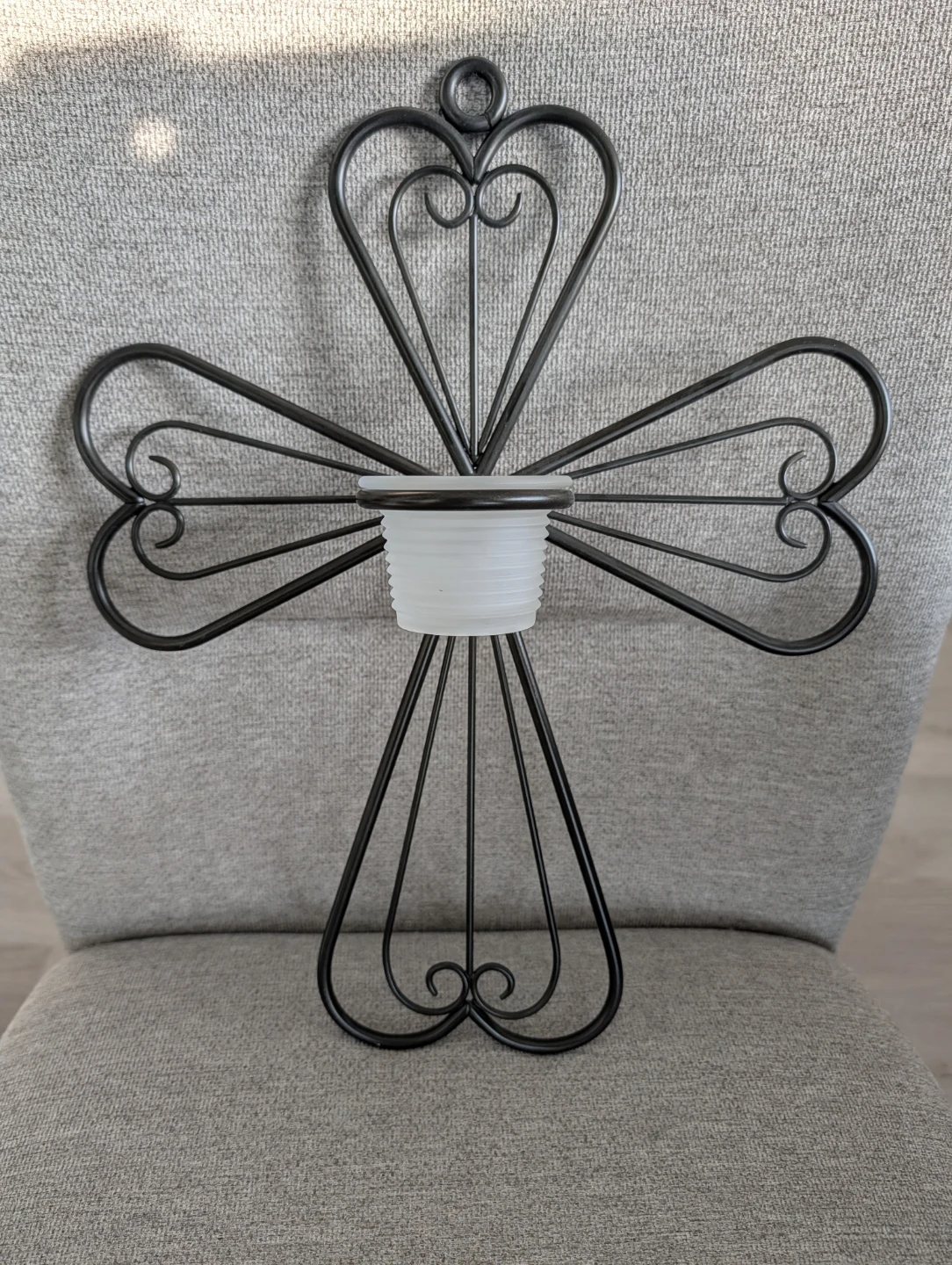 A lovely metal cross candle holder! It's in great shape and would look wonderful in any room of the house
