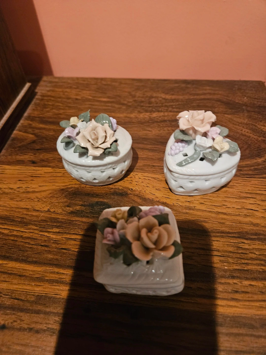 Ceramic Trinket Boxes with Floral Design