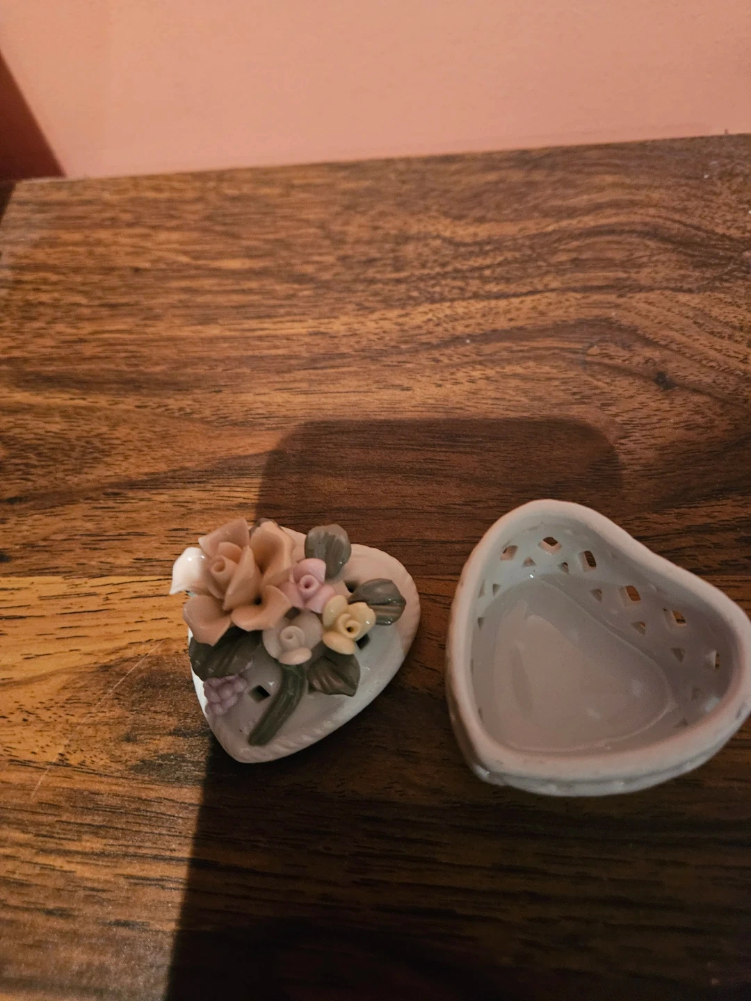 Here's a cute ceramic trinket box in 3 different shapes - oval, heart and square! It features a lovely floral design on the lid and decorative cutouts around the base. Perfect for storing small jewelry or keepsakes!