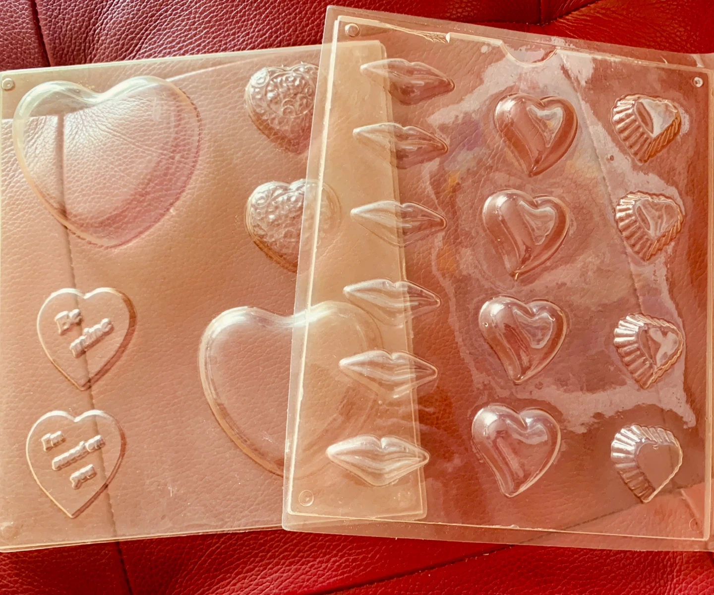 Selling a set of two chocolate molds, perfect for making heart and lip-shaped treats! Great for Valentine's Day or any special occasion. Get creative and make some delicious chocolates!