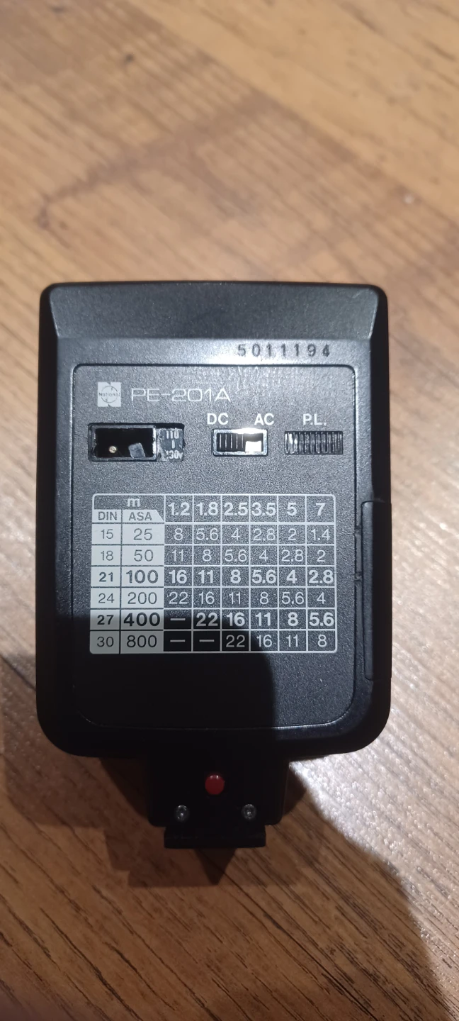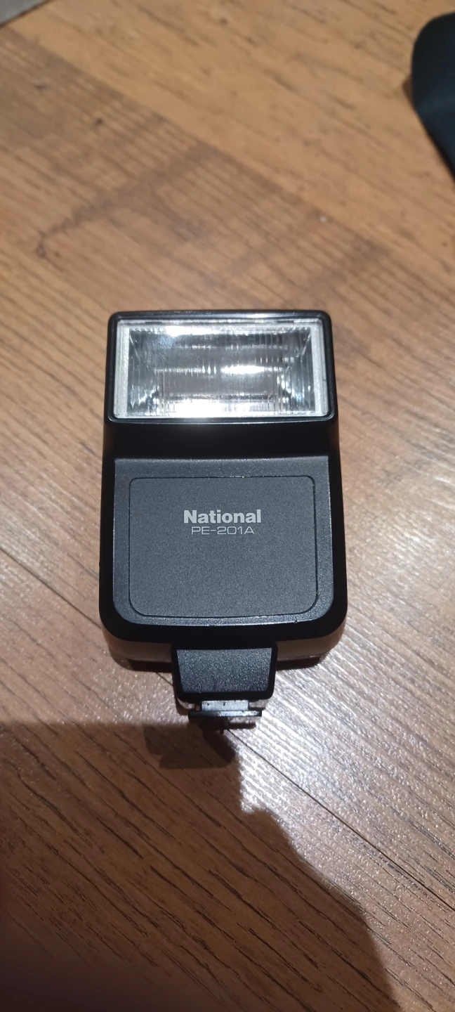 I'm selling a National PE-201A flash, a compact and reliable accessory for vintage cameras. This flash is in good condition, perfect for photographers looking to add a retro touch to their shots. It comes with its original case and is ready to use. This item is used.
