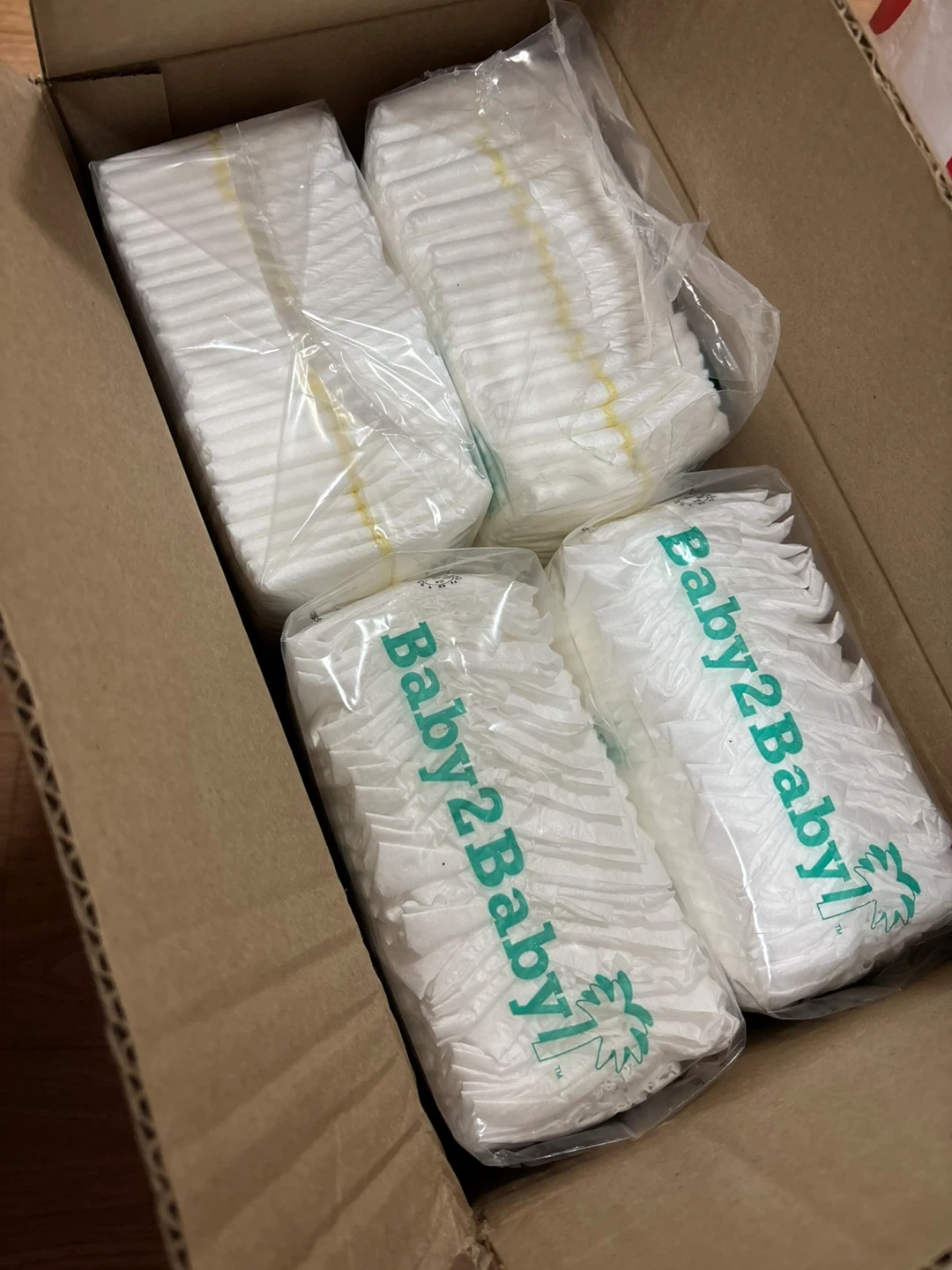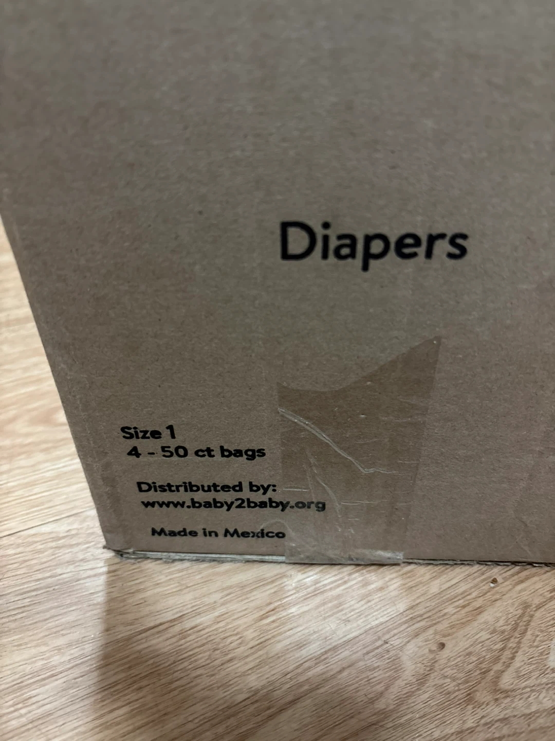 Free a box of Baby2Baby diapers, size 1. The box contains 4 bags with 50 diapers each. Great for newborns!