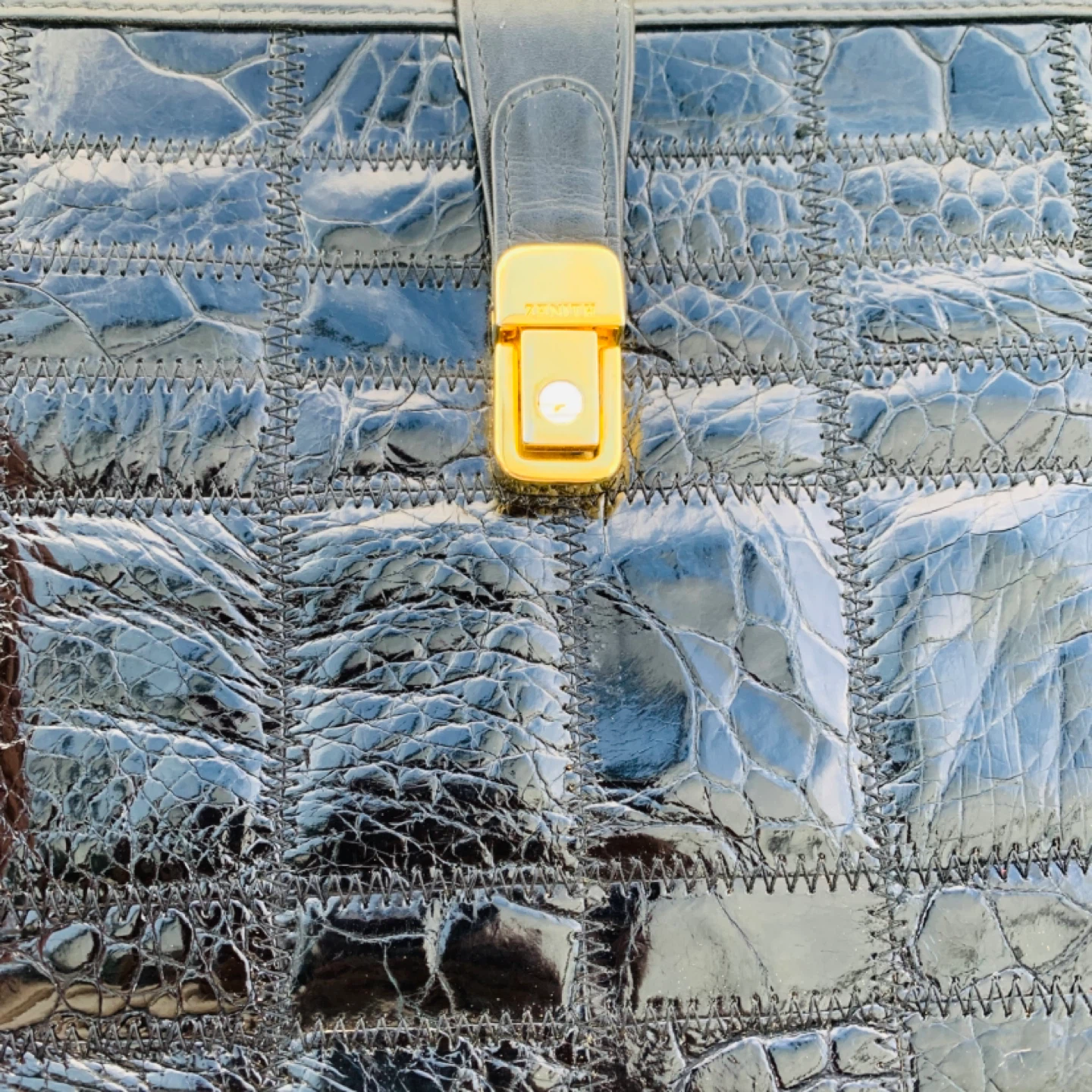 Vintage Zenith Black Croc Embossed Leather