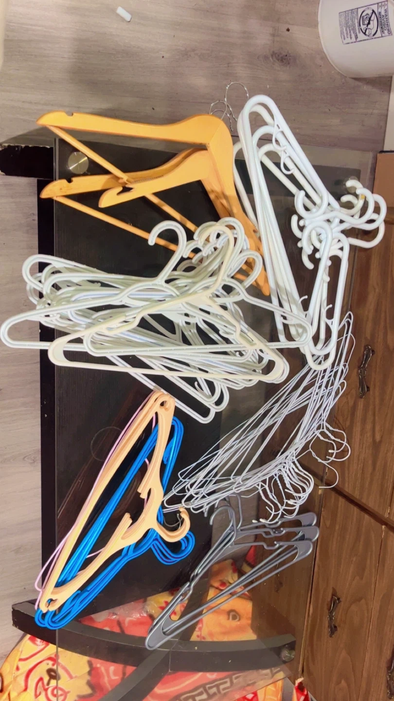 Selling a collection of assorted clothes hangers! There's a variety of colours and styles to choose from, perfect for organizing your closet.