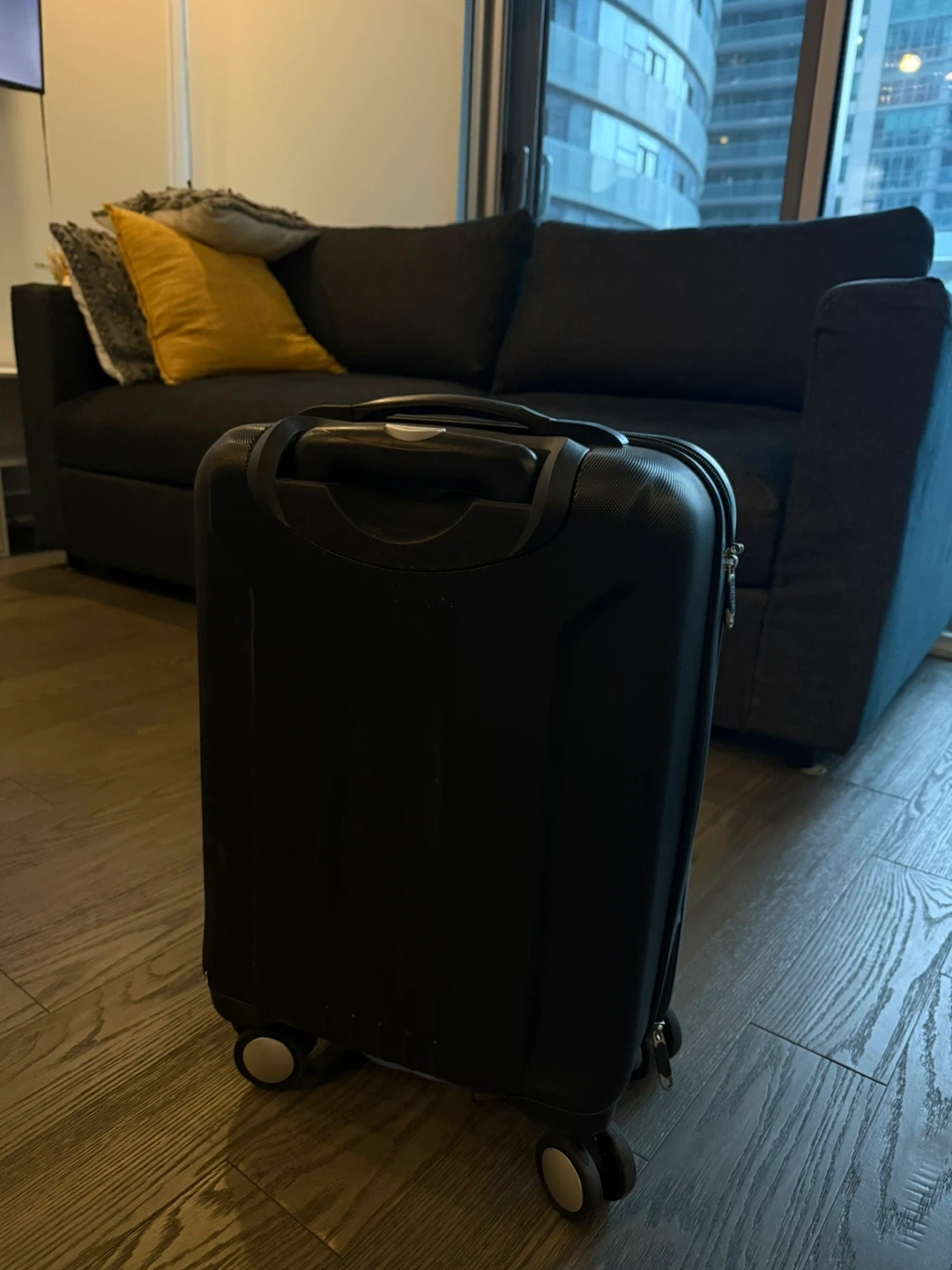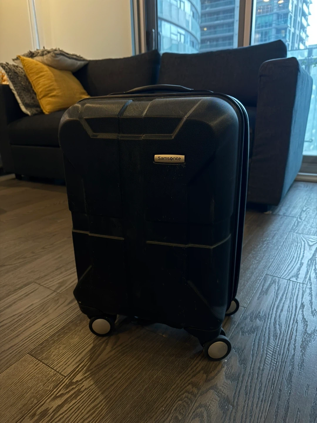 Selling a Samsonite carry-on luggage in black. It's in great shape and ready for your next trip! Perfect size for fitting in overhead bins, and the wheels make it easy to maneuver through the airport