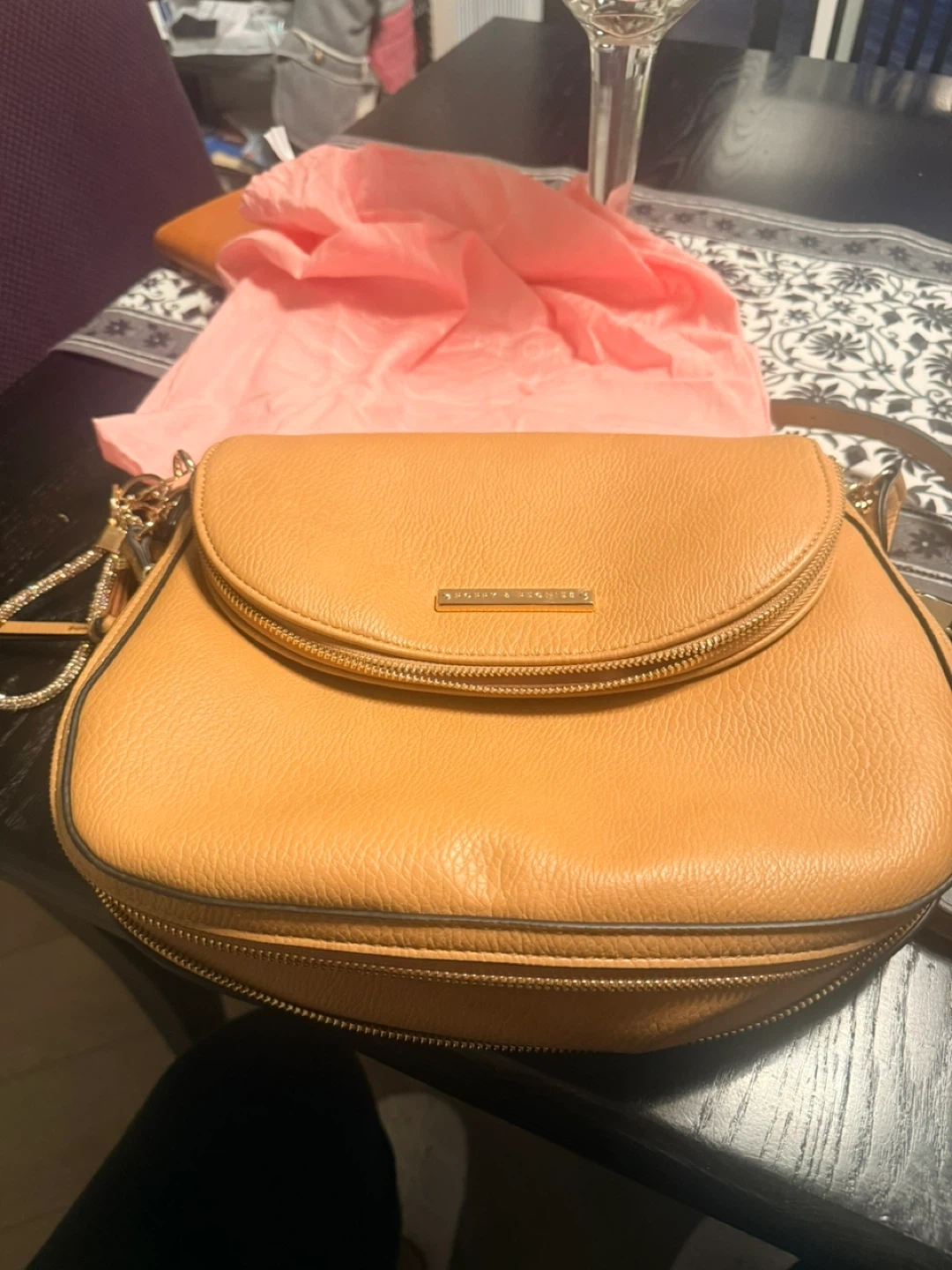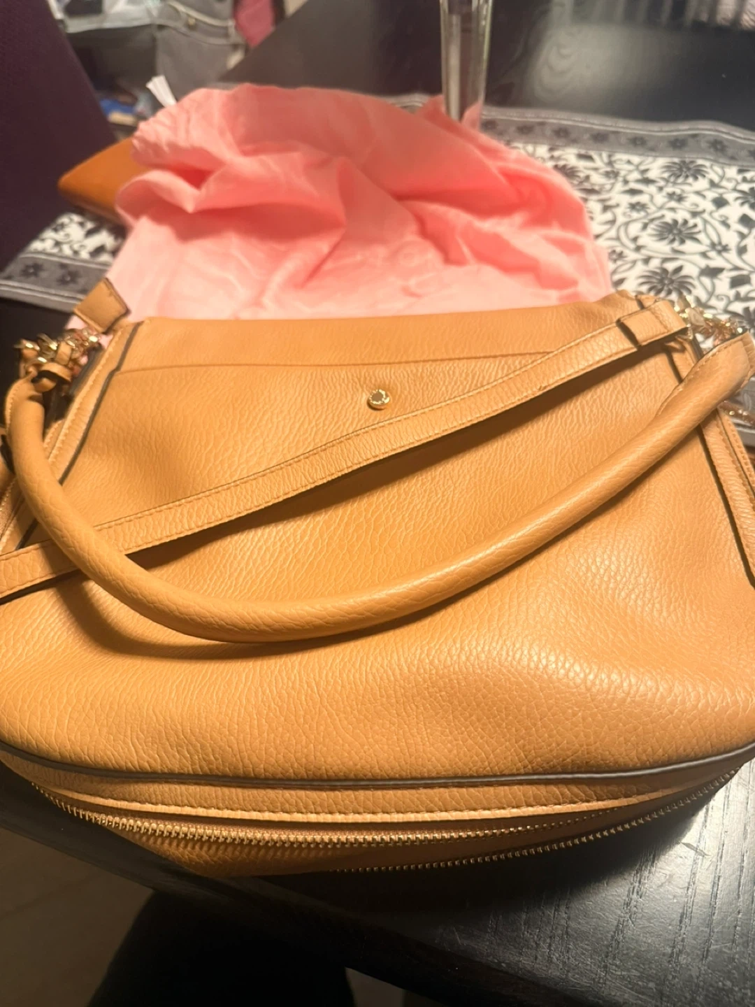 Downtown camel poppy and peonies crossbody