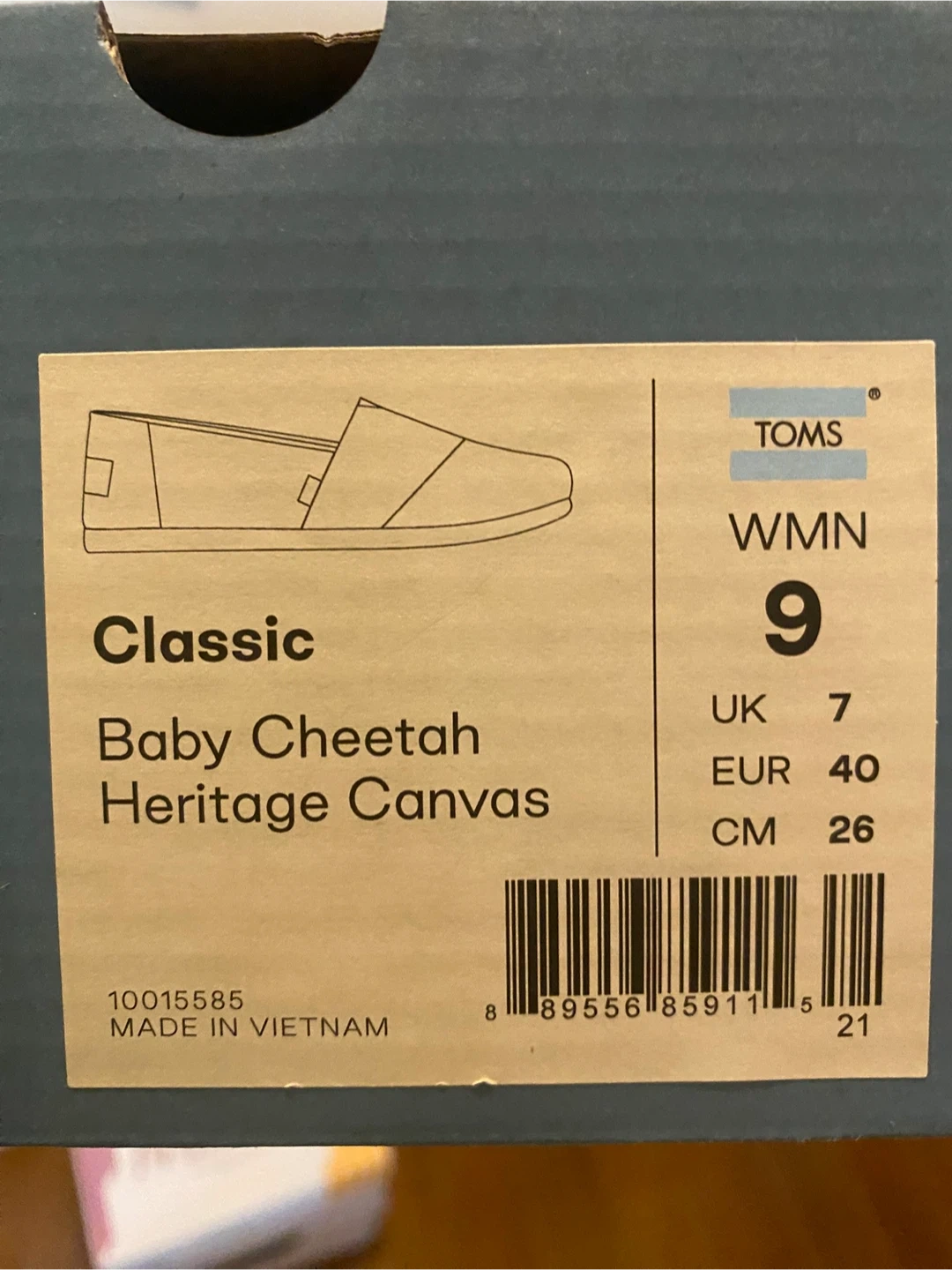 Selling a pair of TOMS Classic shoes in the Baby Cheetah Heritage Canvas design! They're a women's size 9 and come with the original box. These are super comfy and stylish for everyday wear. Lightly worn only.