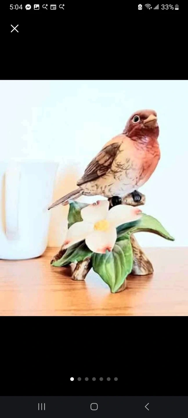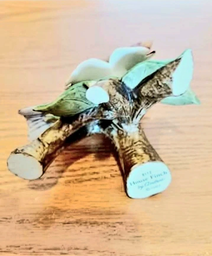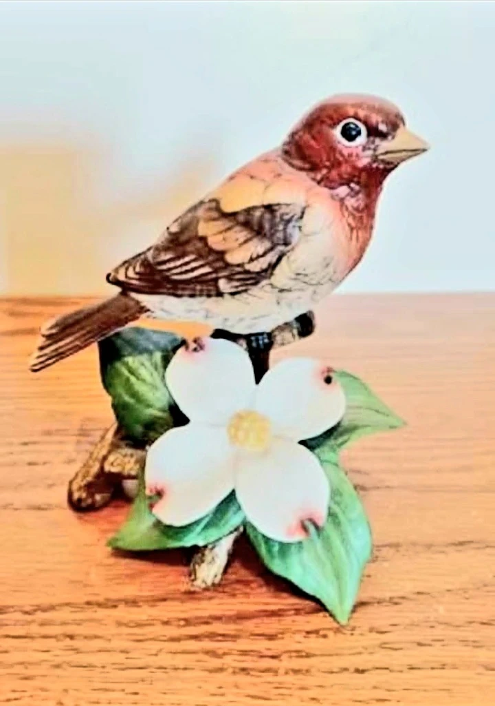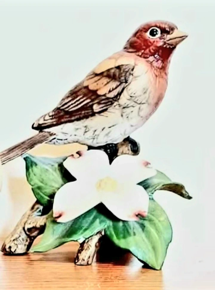 Vintage and Very Rare 'House Finch by Andrea' Porcelain Figurine, perfect for collectors and bird enthusiasts alike. This charming piece captures the delicate beauty of a house finch perched on a flowering branch. It would be a lovely addition to any home decor. This item is in very good condition.