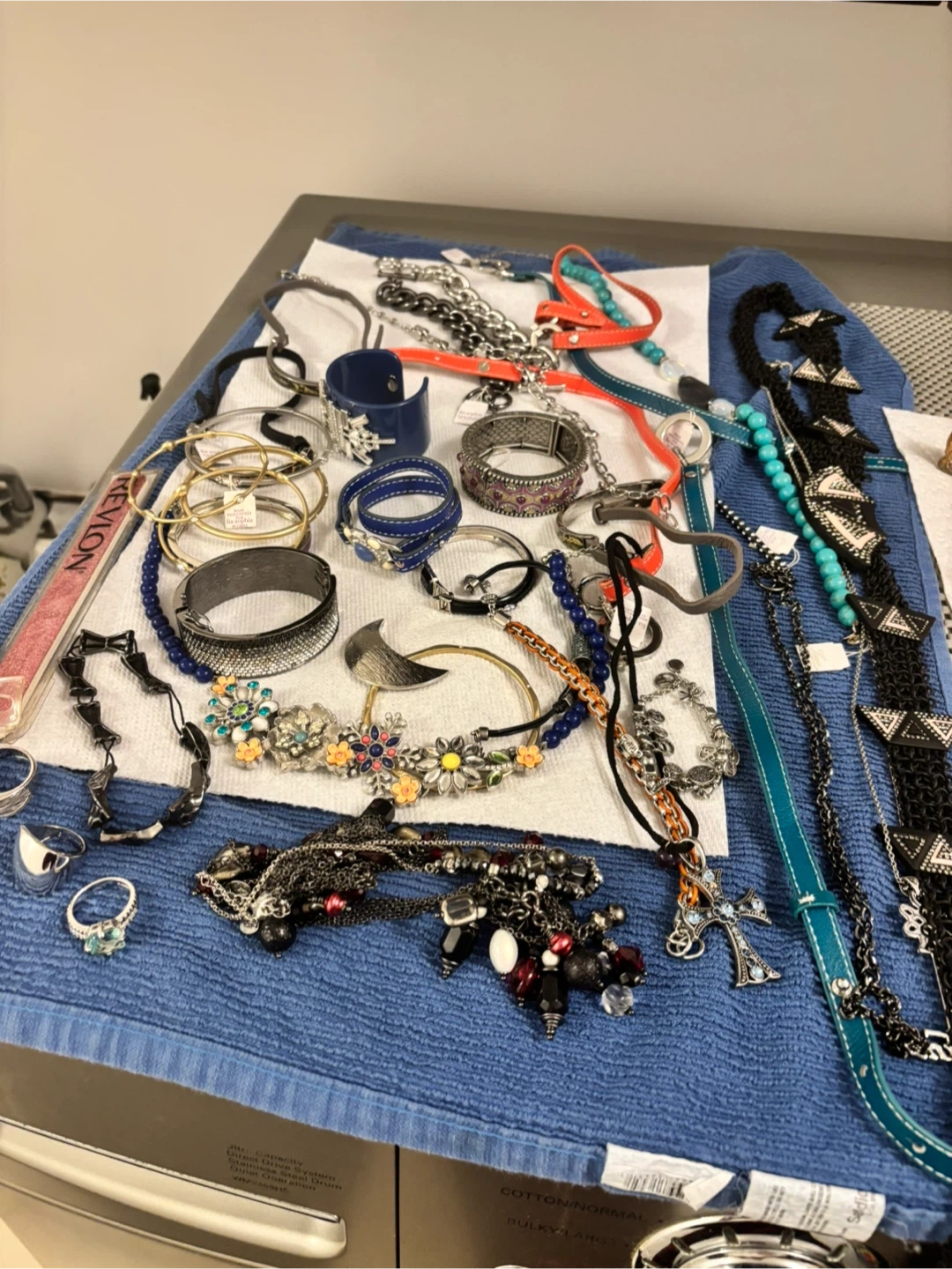 Selling a mixed lot of jewellery! Includes items from Oromart, creation Dorlan, and Lia Sophia. There are earrings, necklaces, rings, and more. Great for anyone who loves vintage or costume jewellery