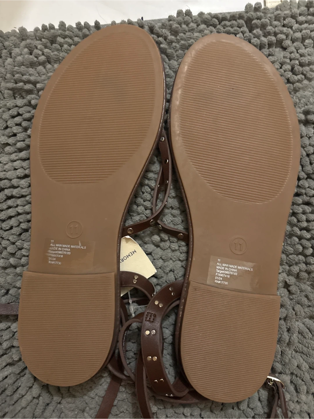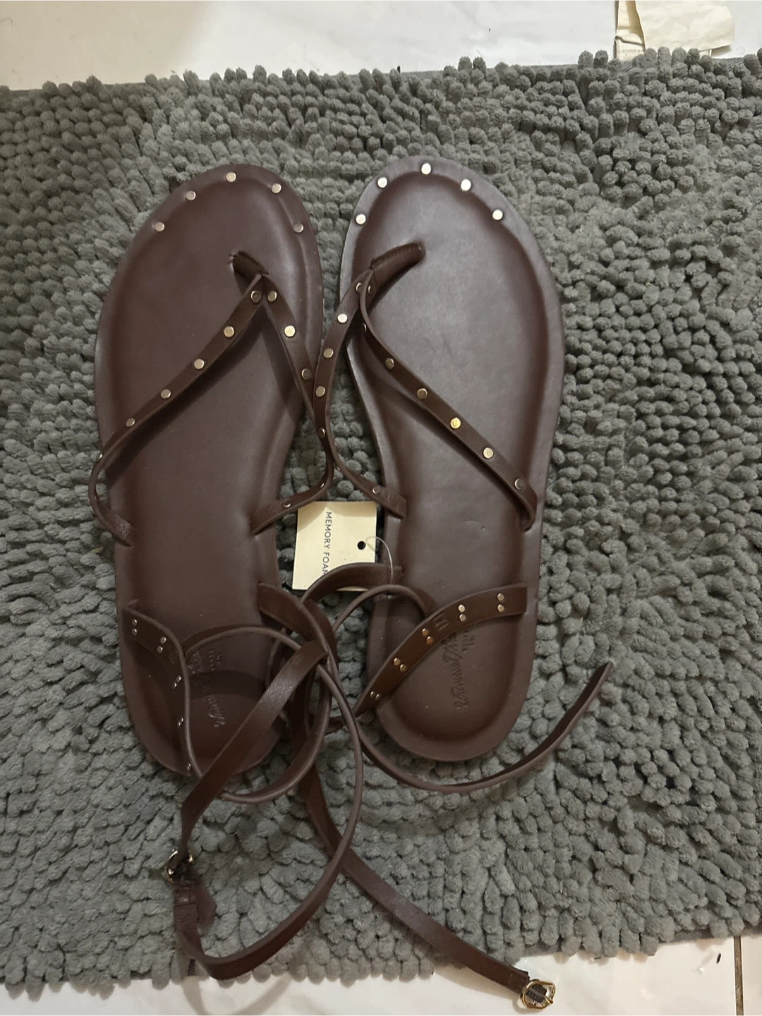 These Memoi gladiator sandals are a stylish addition to any wardrobe! They come in a rich brown colour and are a size 11. The sandals feature a memory foam insole for added comfort. Perfect for summer outings!