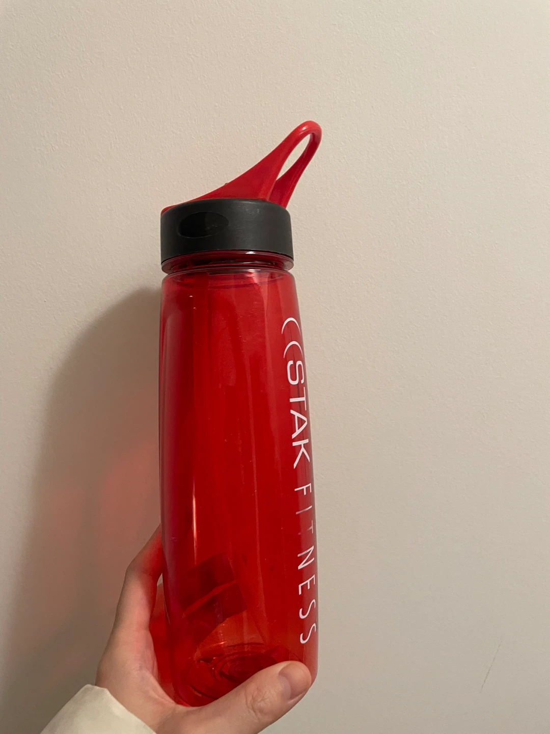 Selling a red Stak Fitness water bottle! It's in great condition and perfect for staying hydrated during workouts or on the go