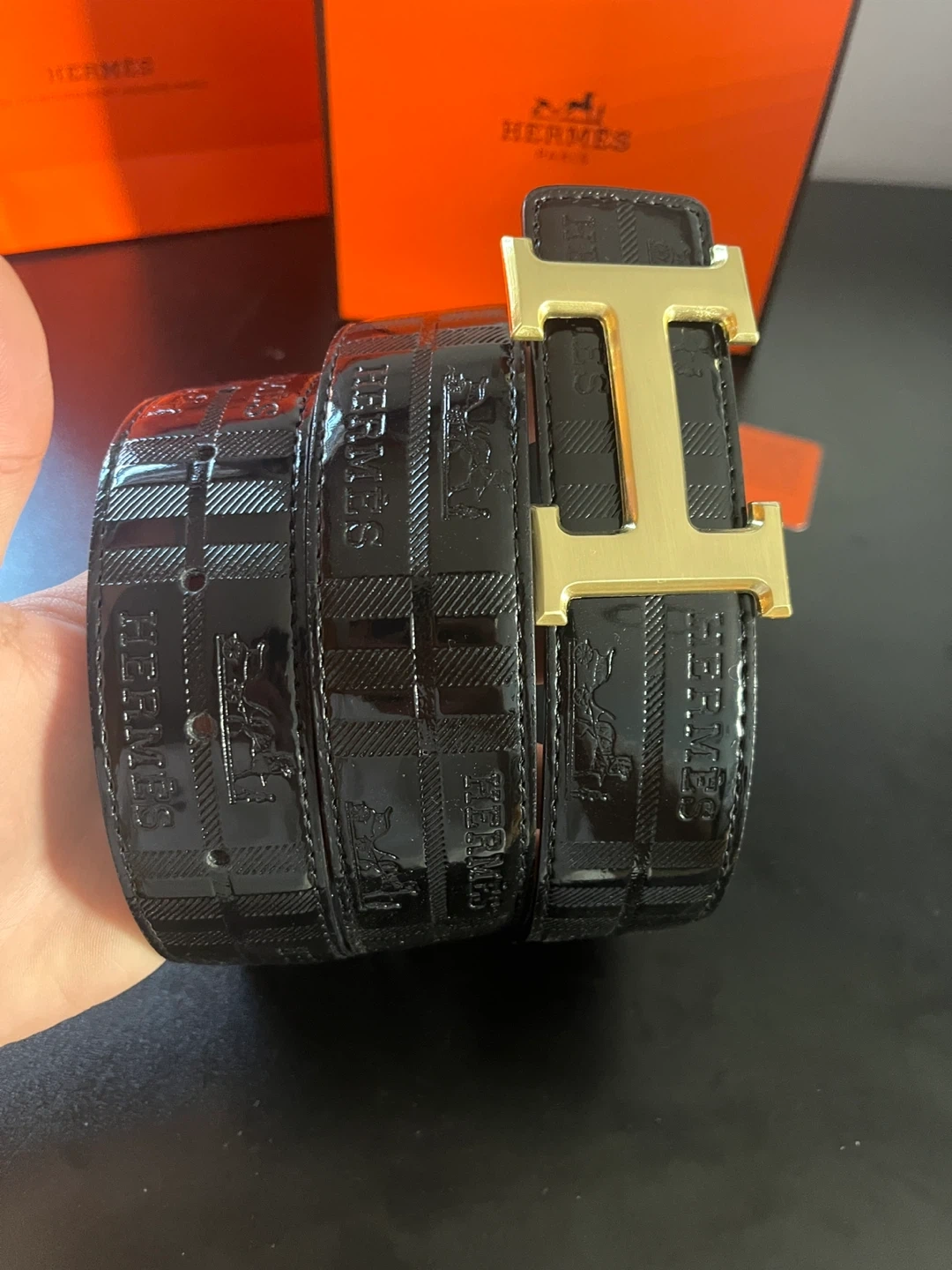 Selling a stylish Hermes black belt in size 44 (110cm). It comes with the original box and dust bag. The belt features the iconic 'H' buckle. Perfect for adding a touch of luxury to any outfit!