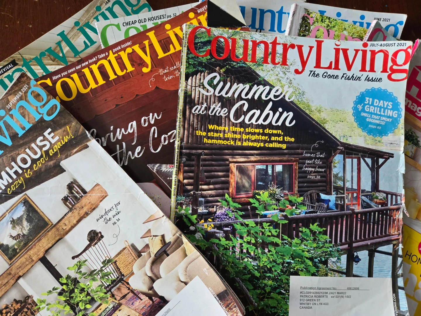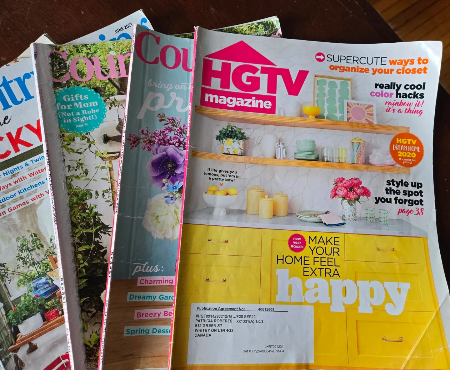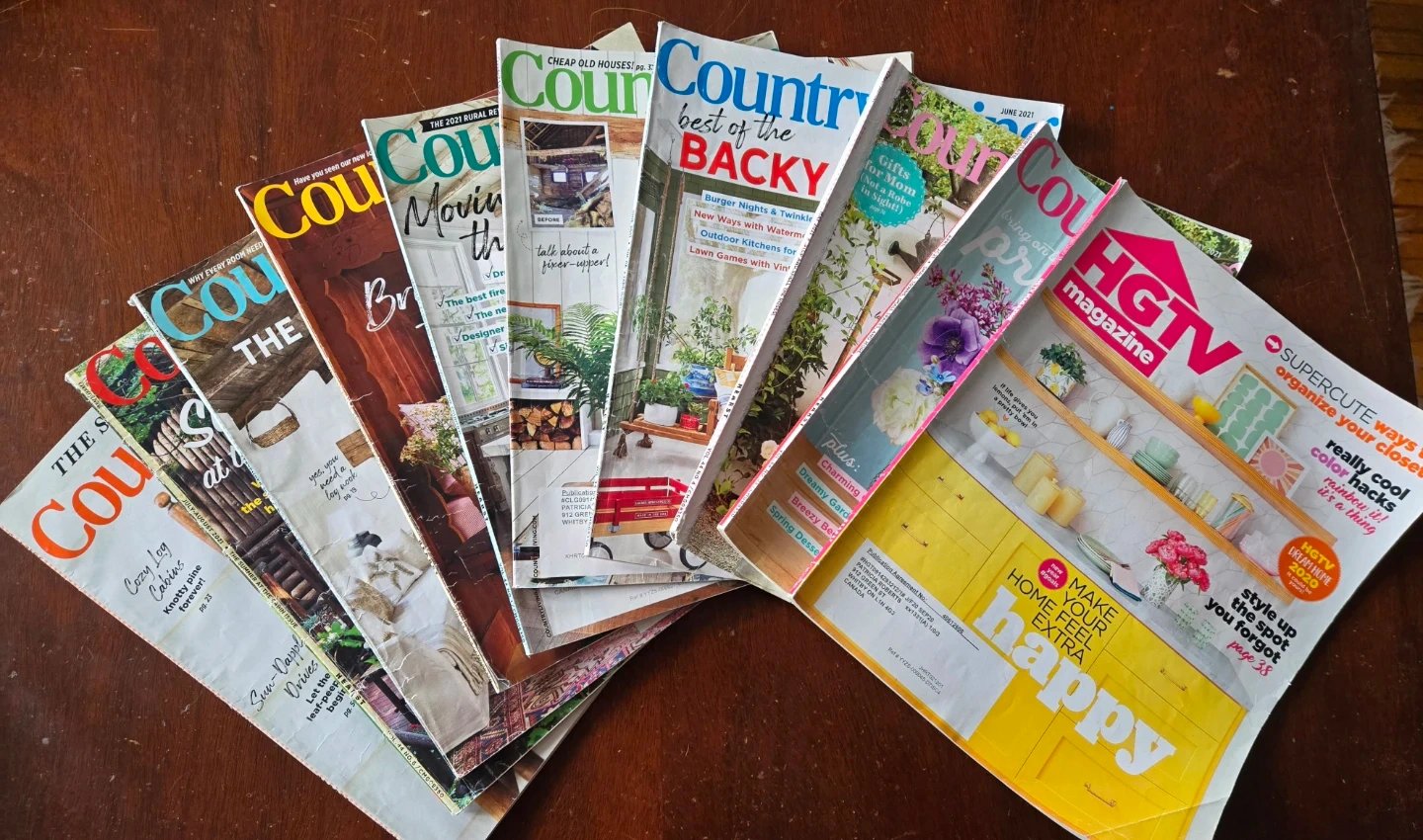Selling a collection of nine Country Living and one HGTV magazines from 2021. Perfect for getting some inspiration for your next home decor project or just enjoying some cozy reads. Lots of great ideas and beautiful photos inside! Pretty good condition with a few folds on front page and a few pages ripped out. $1 for each.
