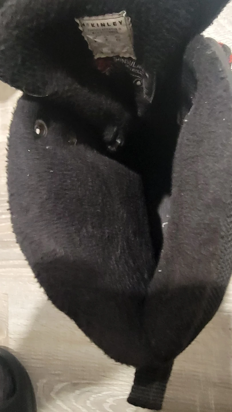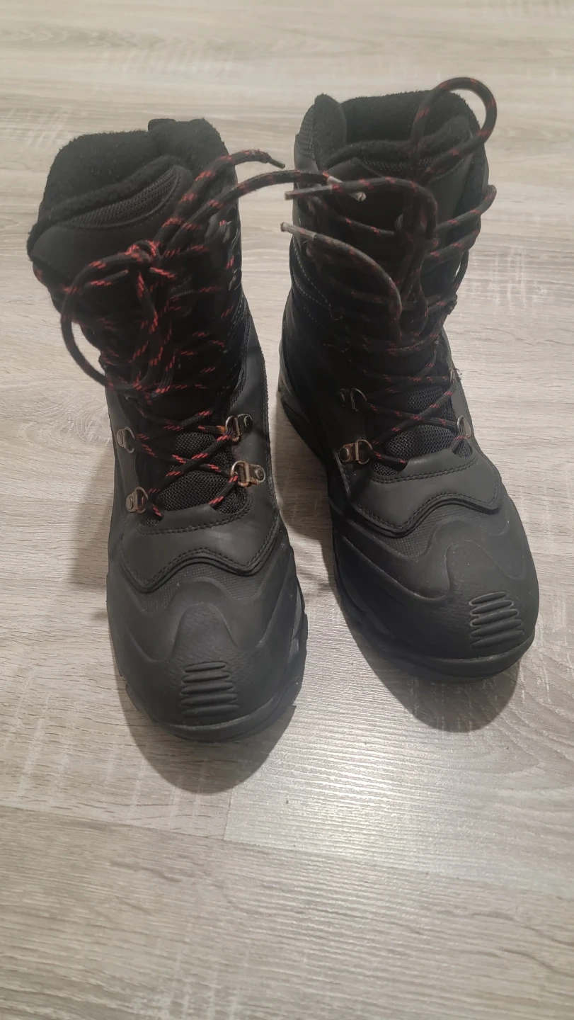 Selling a pair of McKinley Stratus II men's winter boots in size 9 (US). They're black and have red and black laces. The size is also listed as UK 8 and EUR 42. They're perfect for keeping your feet warm and dry this winter season!