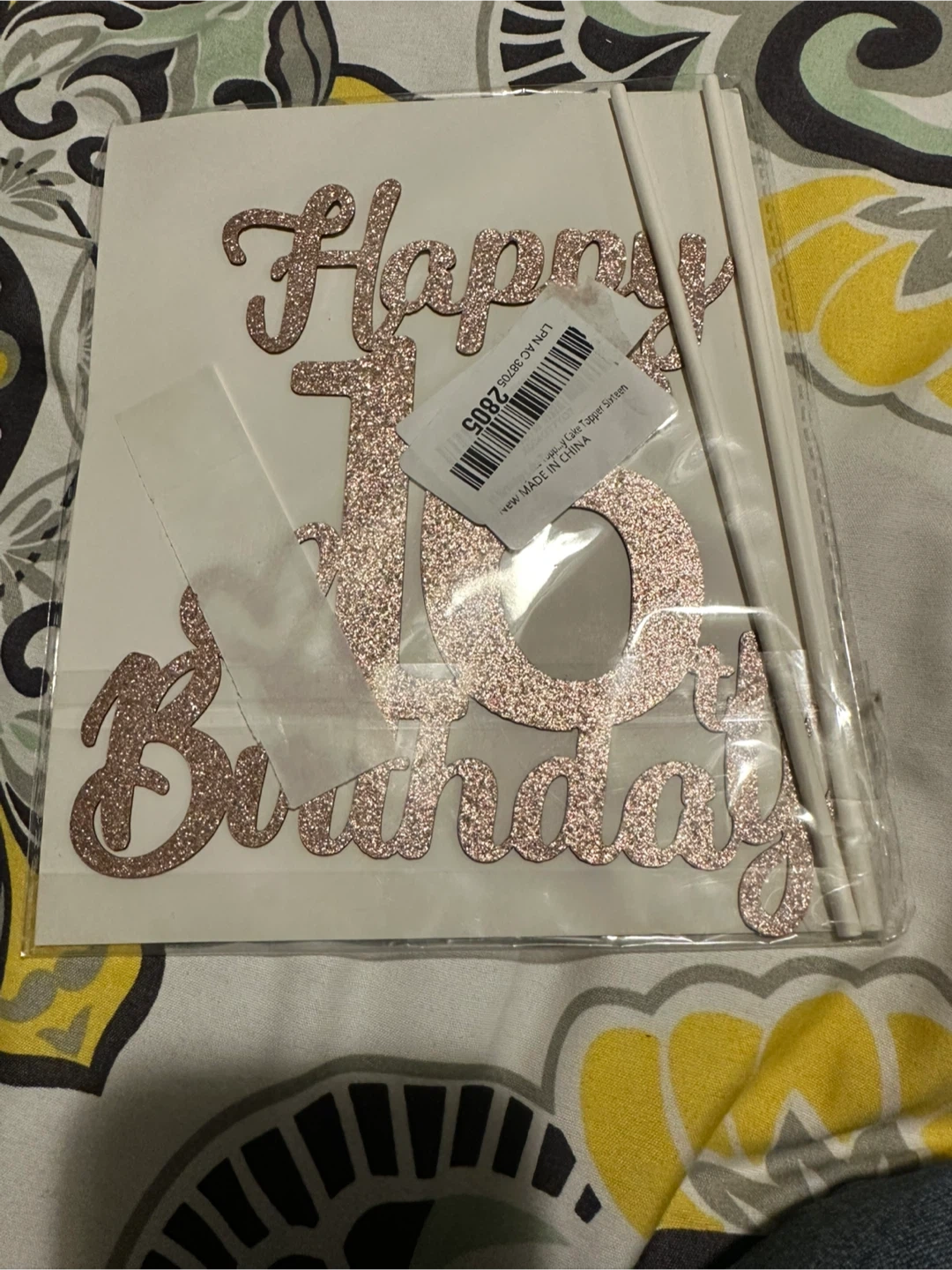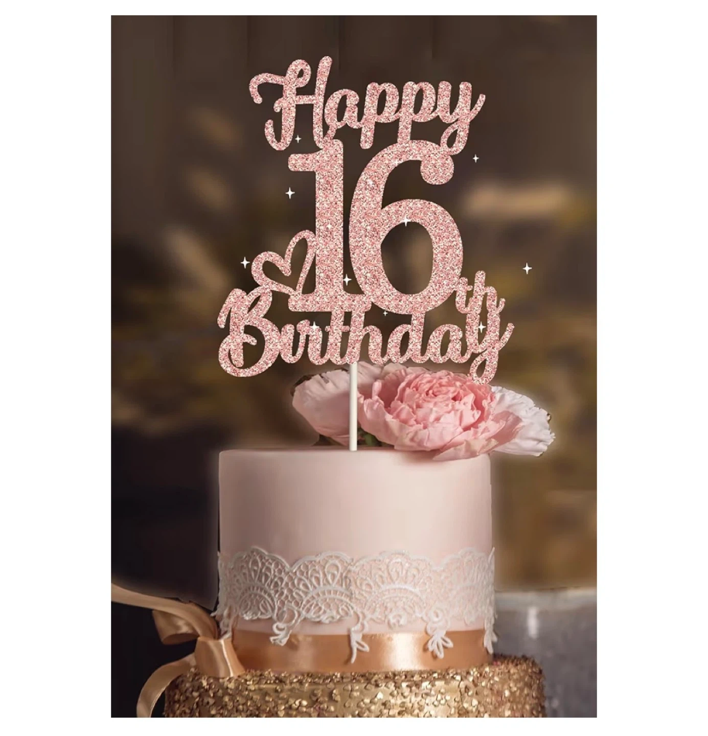 Add a touch of sparkle to your sweet sixteen celebration with this rose gold "Happy 16th Birthday" cake topper! It's the perfect finishing touch for any birthday cake