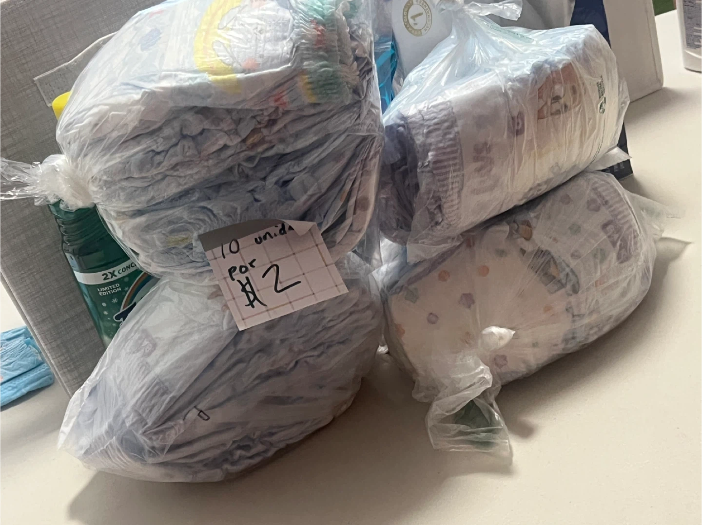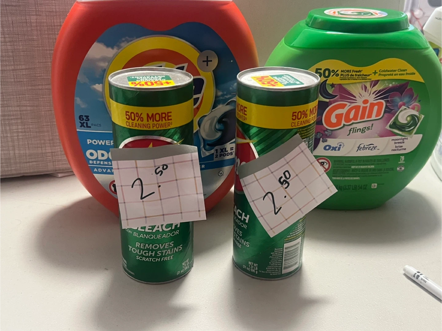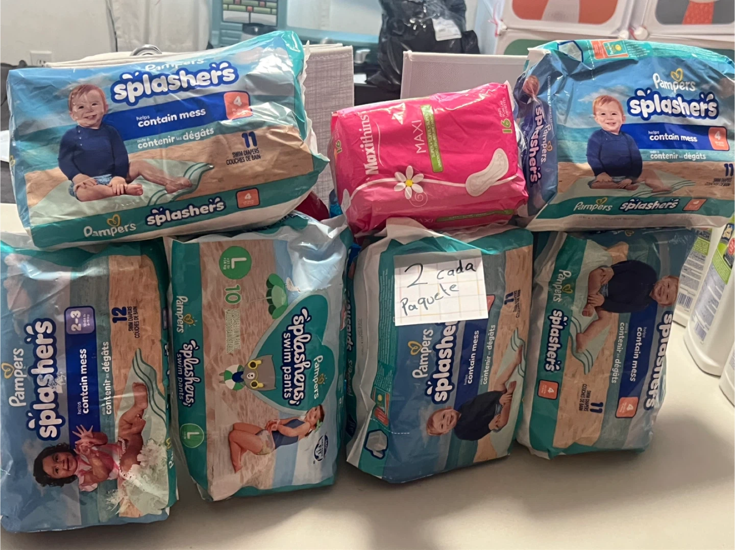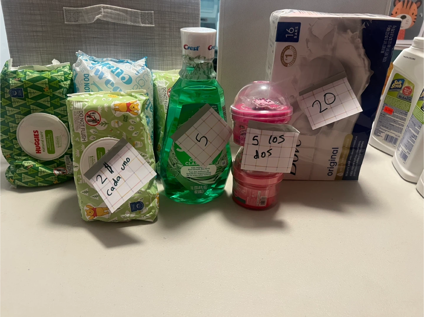 Selling a bundle of household cleaning and personal care items. Includes Fabuloso multi-purpose cleaner, Mr. Clean, Value Pack Floss Picks, Oral-B Glide Floss Picks, Huggies wipes, Dove soap, Crest mouthwash, and Pampers Splashers swim pants. All items are new