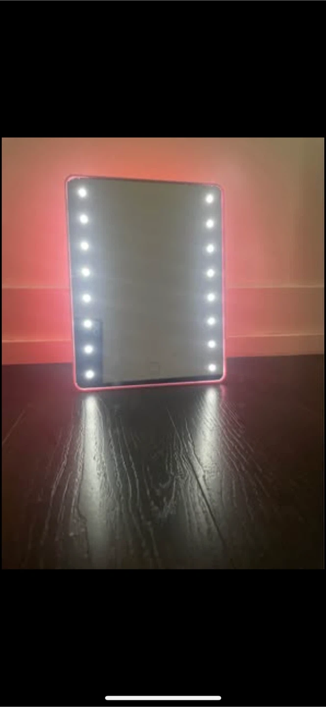 Selling a vanity mirror with LED lights, perfect for makeup application or just adding a bit of glam to your space! The mirror is in great condition and the lights work perfectly. It's a lovely pink colour!
