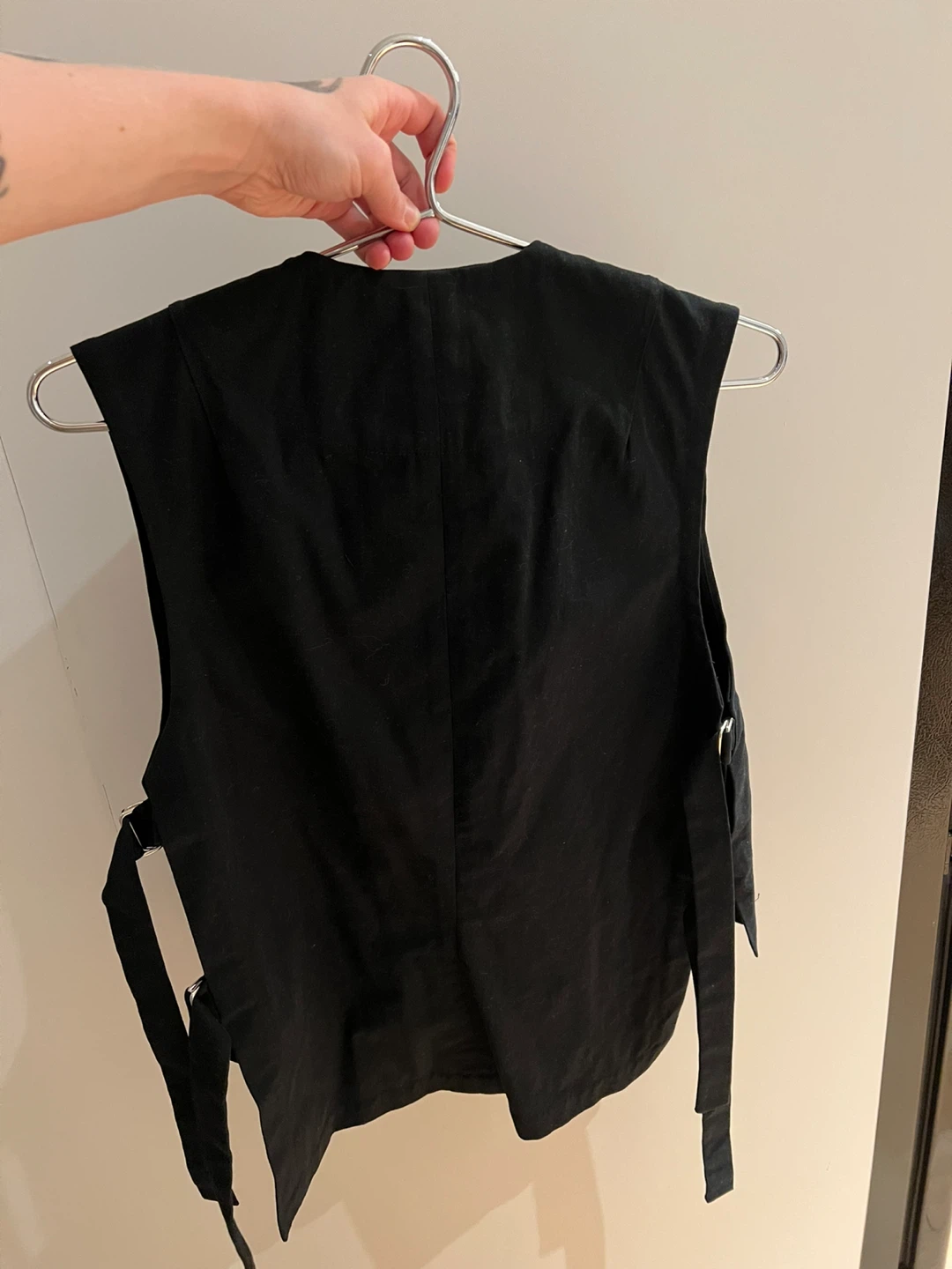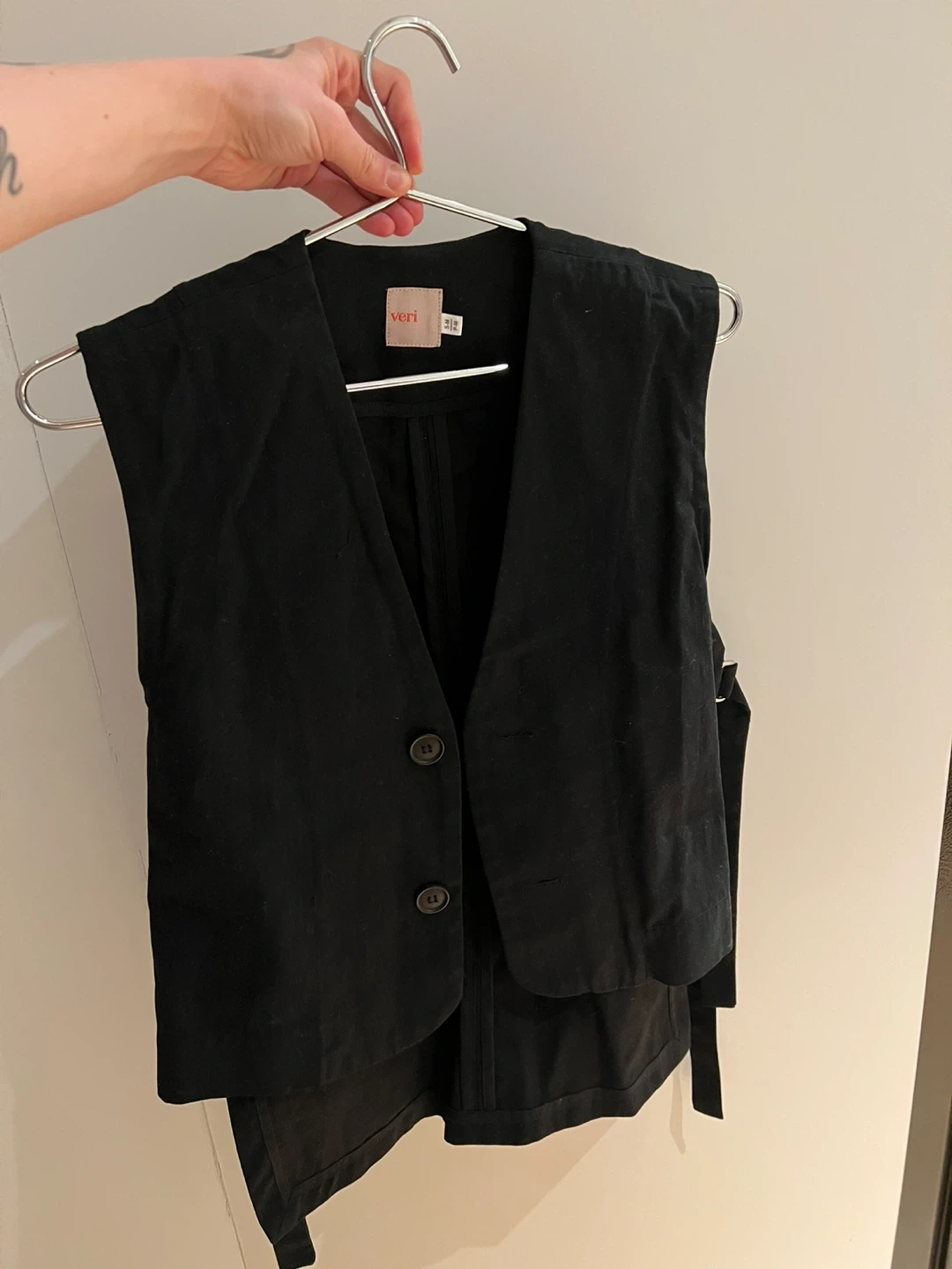 Minimalist black cotton vest from all-gender Montreal brand Veri in size S.