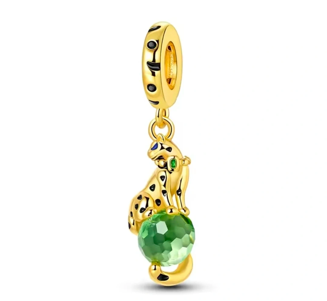 New Gold Leopard Green Ball Charm