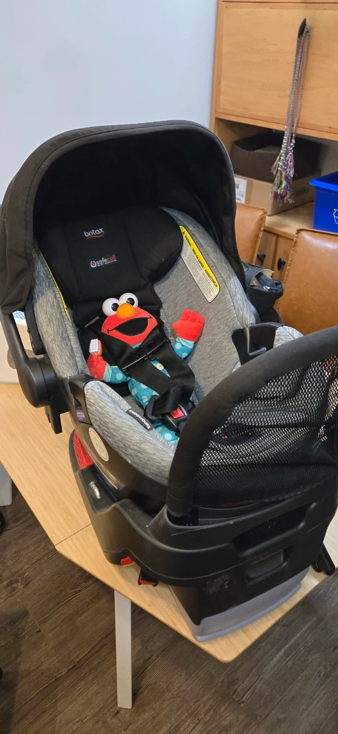 Selling a Britax SafeCell infant car seat! It's in great condition and ready for a new little one. The car seat features SafeCell impact protection for added safety and peace of mind. Elmo not included.