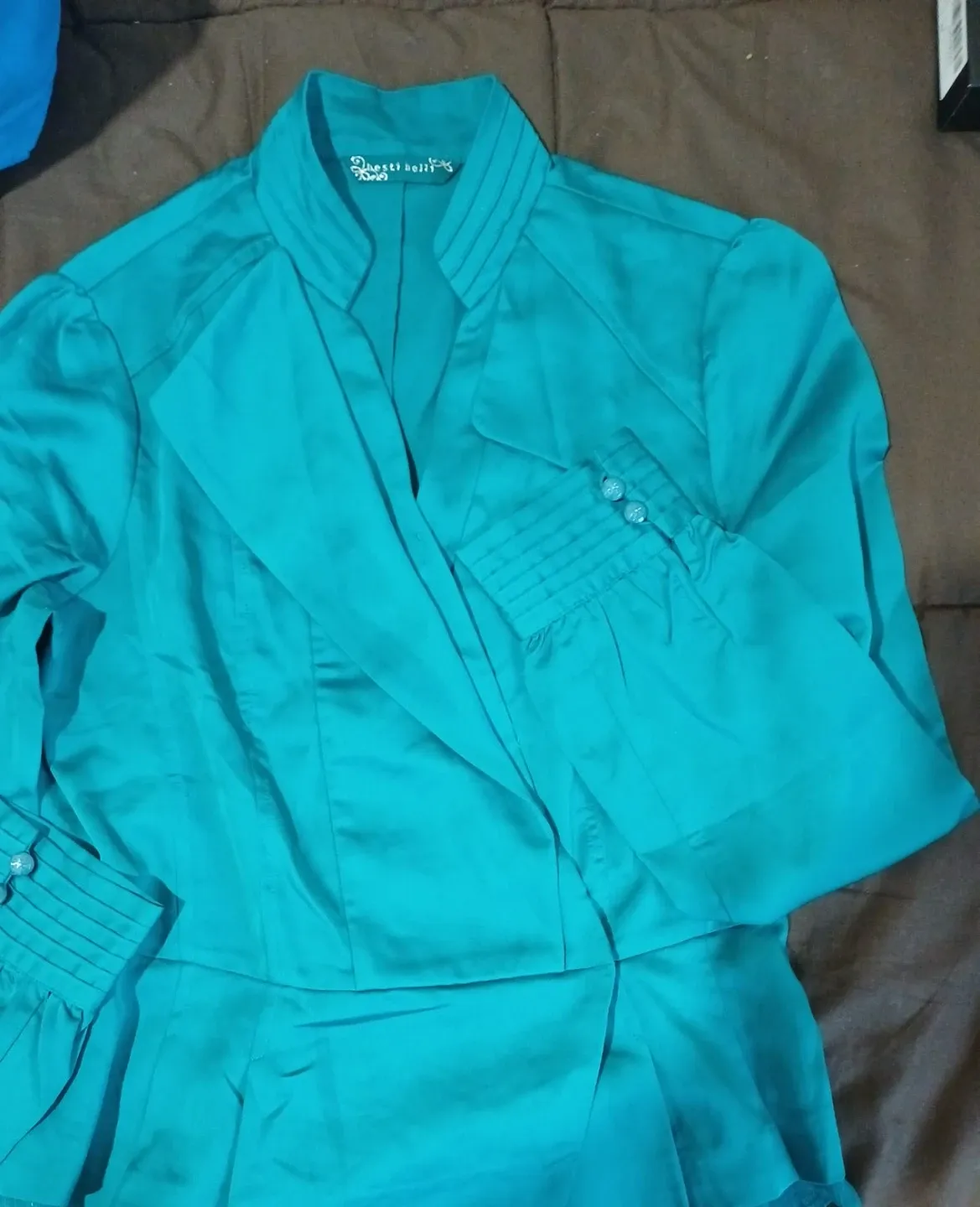besti belli Chic Teal Satin Blouse (XS or snug S)