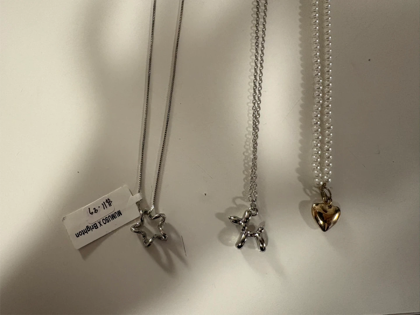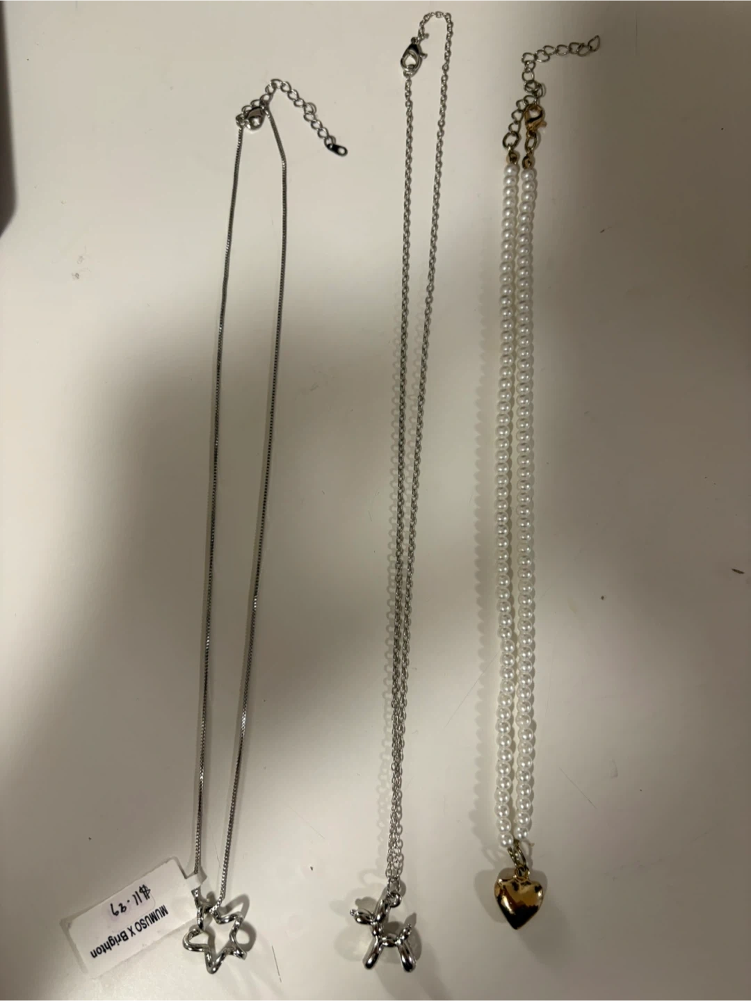Selling a set of 3 necklaces from Miniso's collaboration with Brighton and H&M! Includes a star, a balloon dog, and a pearl heart necklace. All in awesome condition and ready to accessorize your outfits