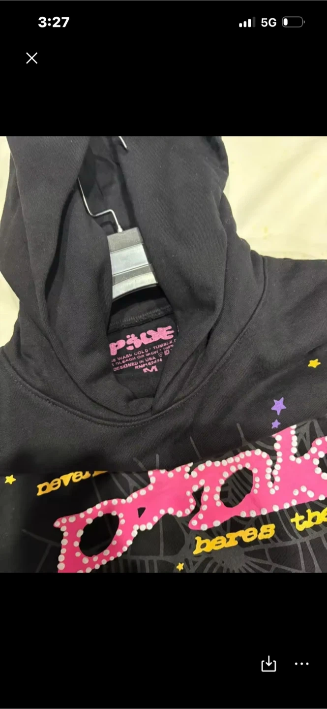 Selling a P*nk! black hoodie in size medium. It features a cool spiderweb design with colourful stars. Perfect for adding a bit of edge to your wardrobe!