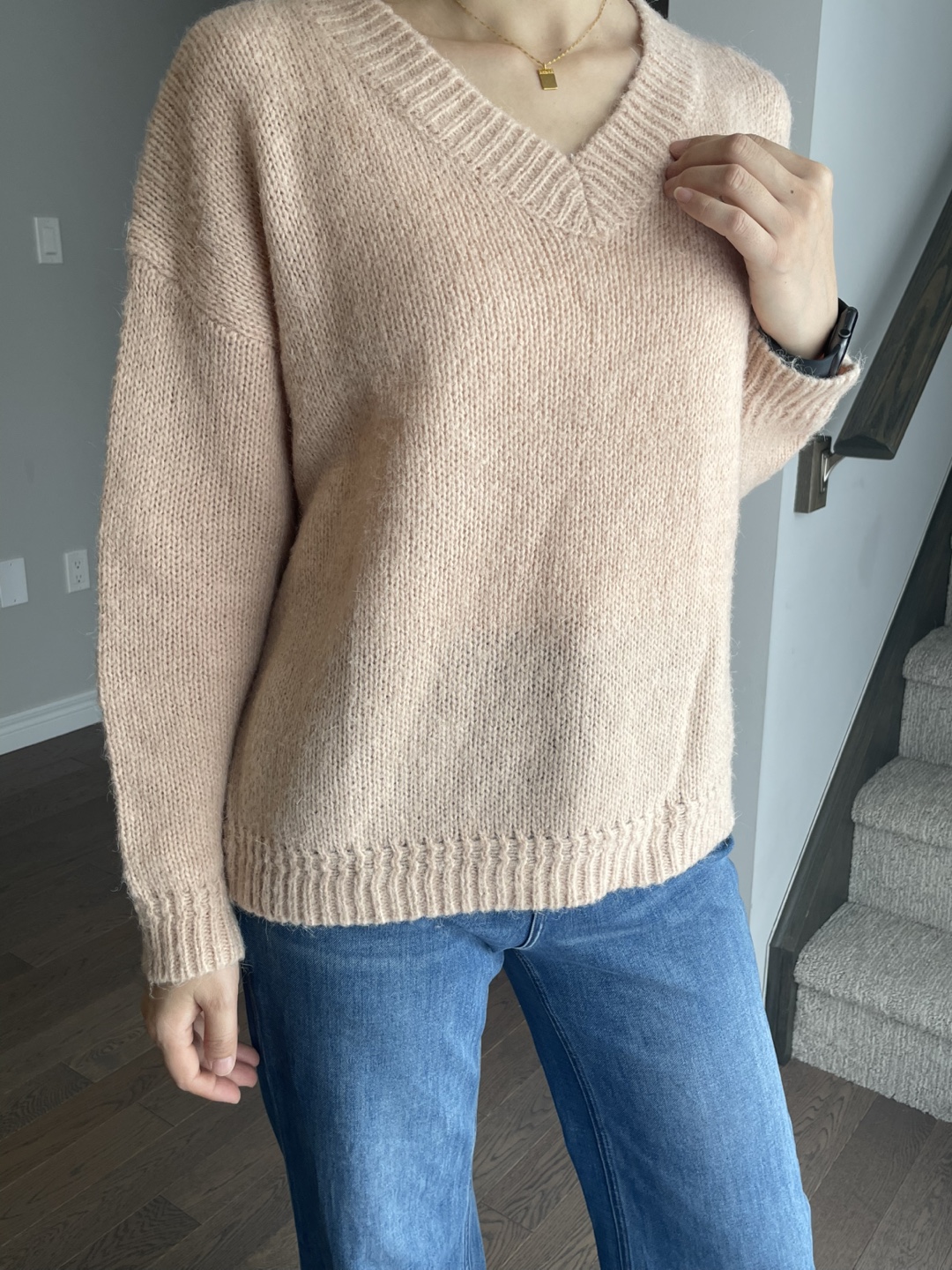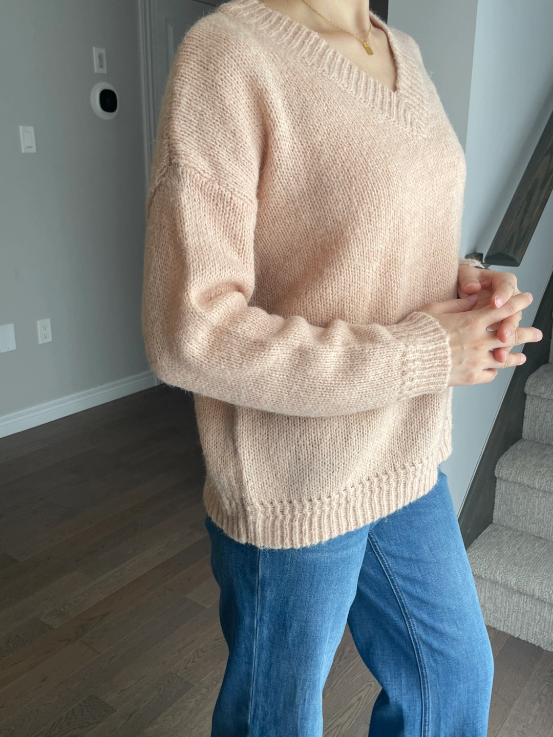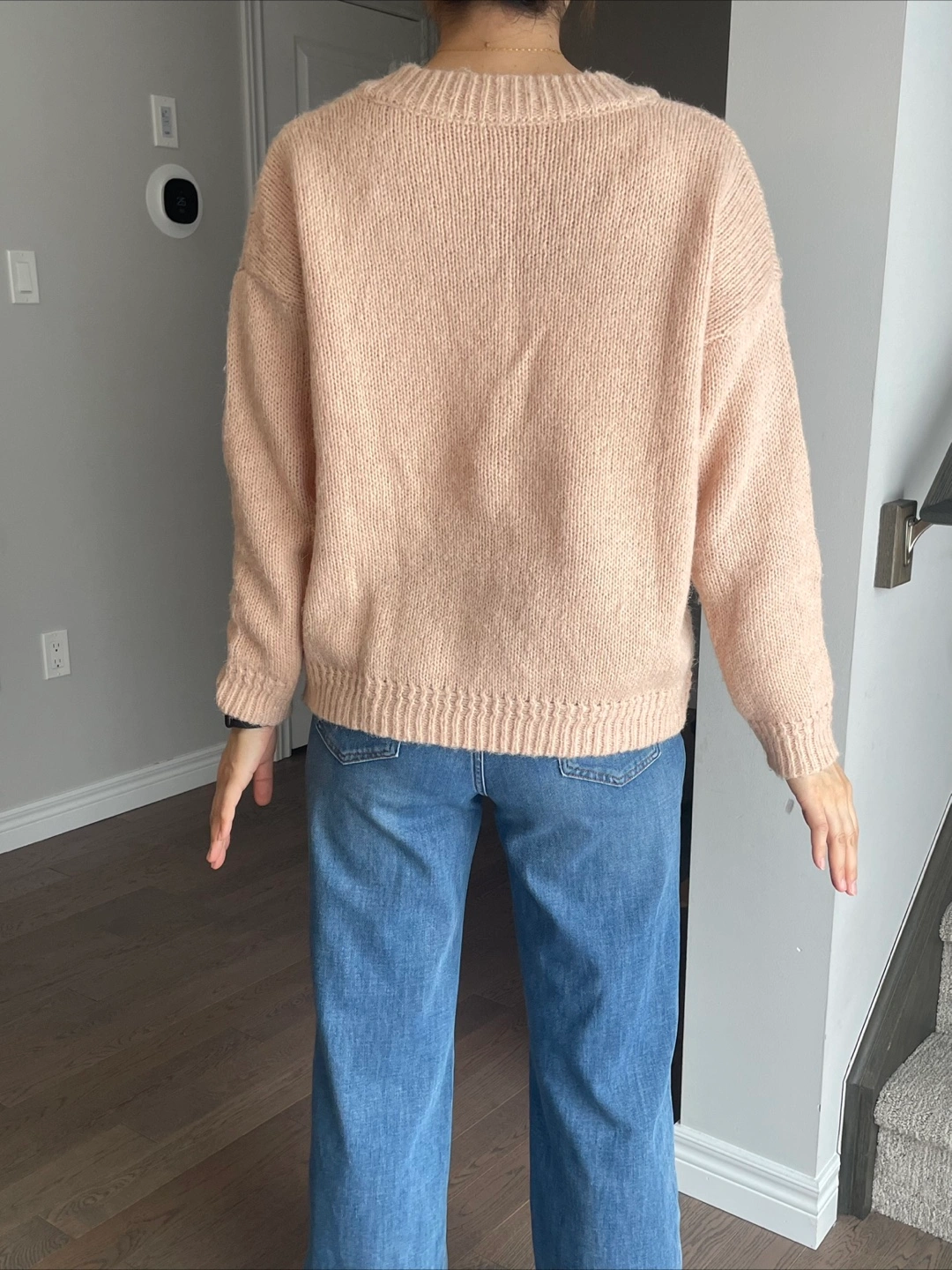 Peach Knit V-Neck Sweater- 15% wool