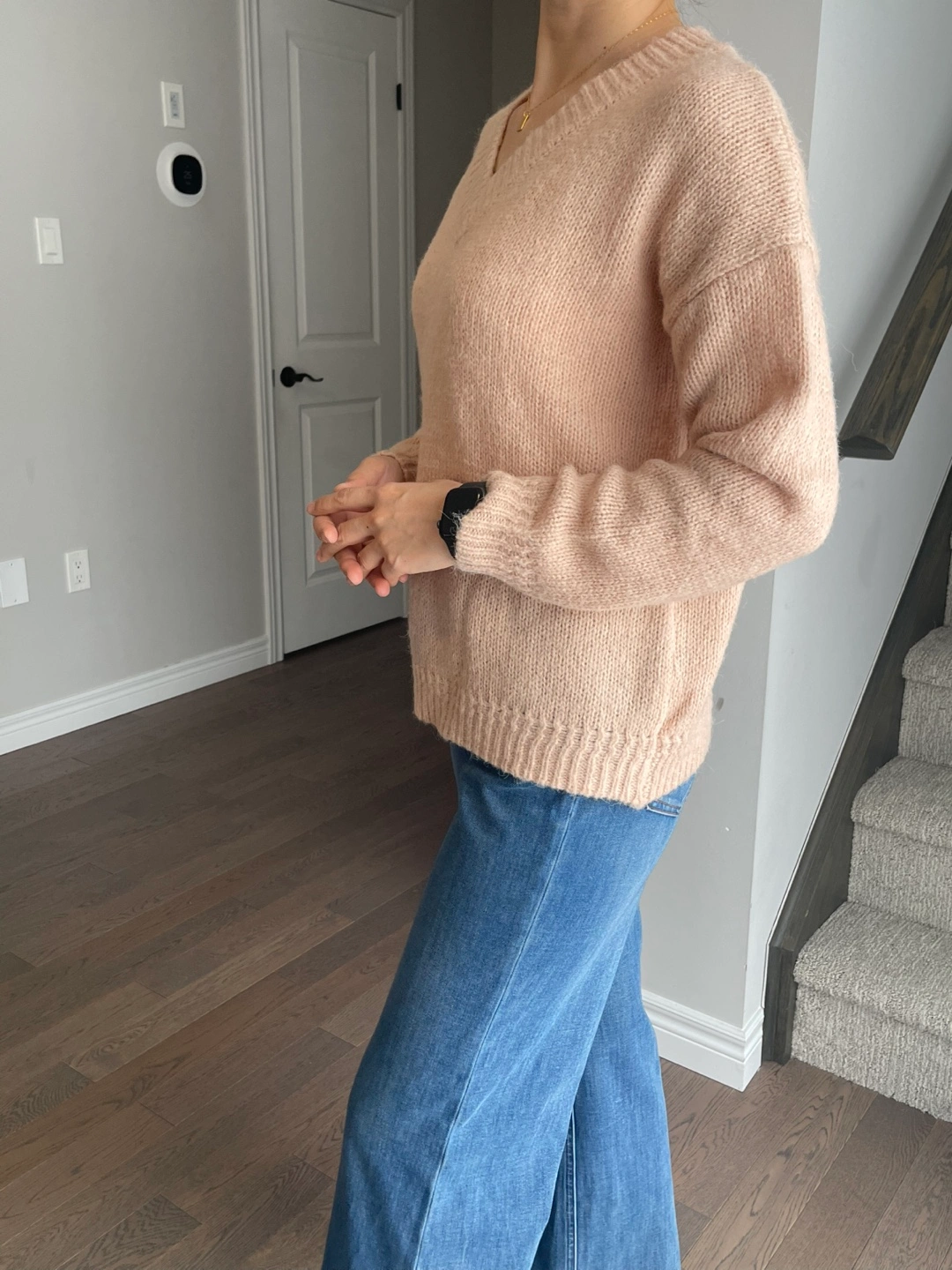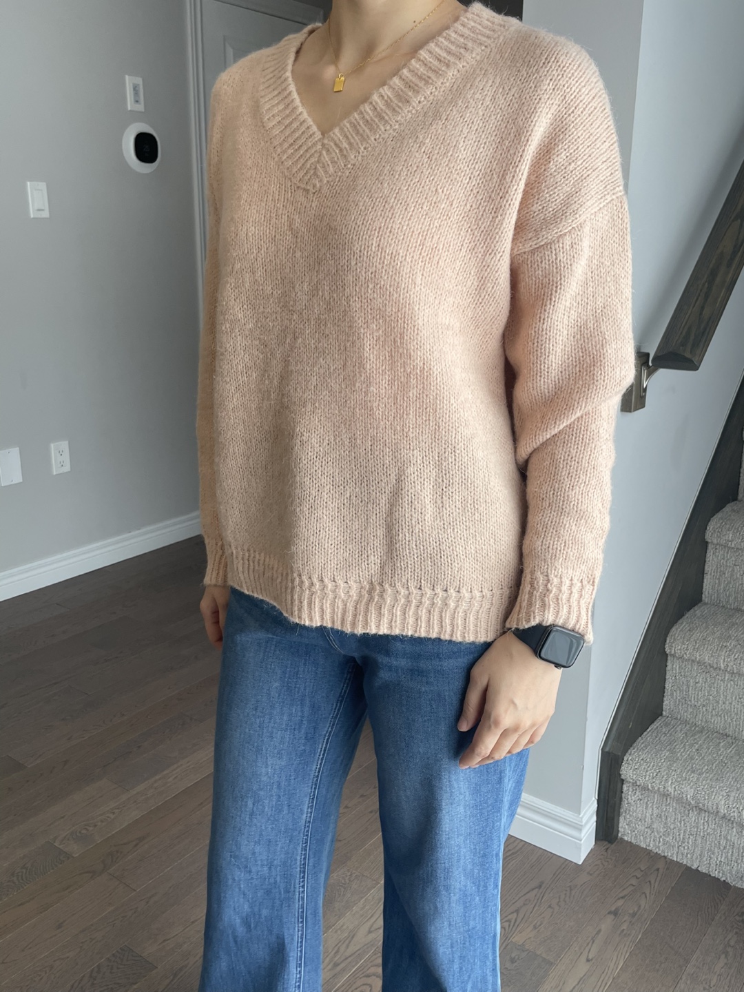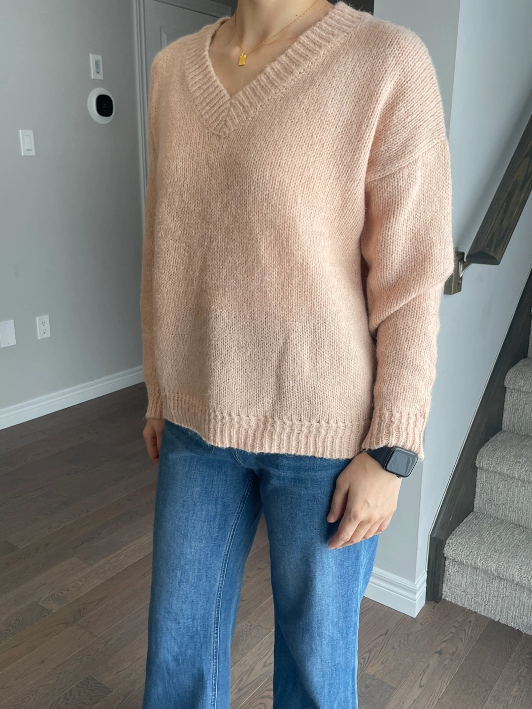 Peach Knit V-Neck Sweater- 15% wool