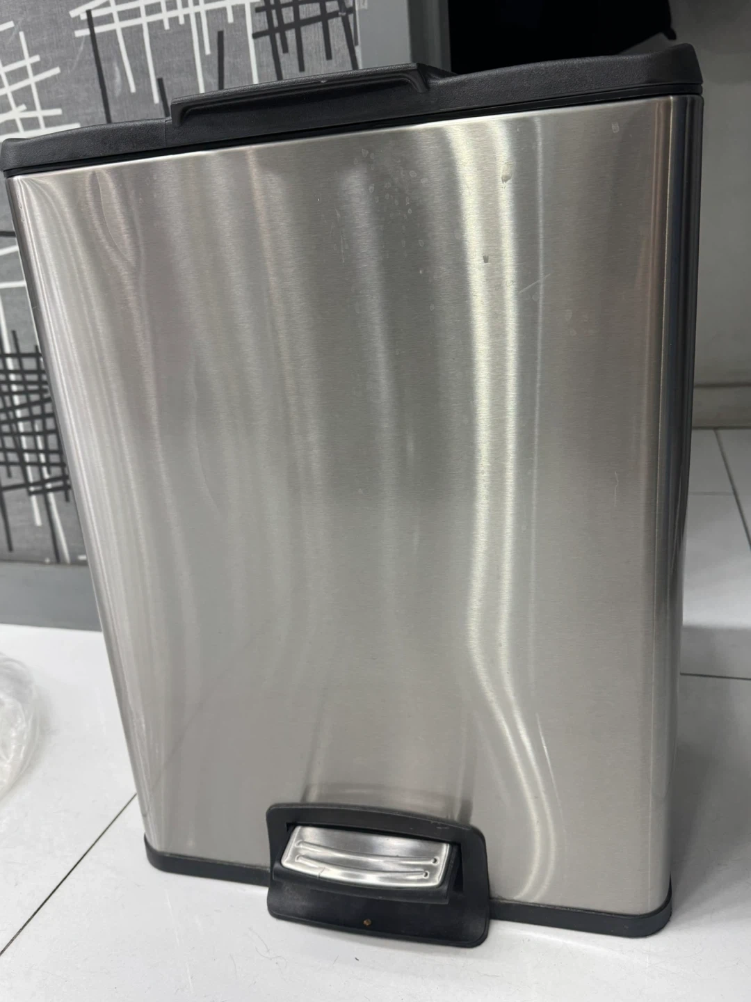 Selling a stainless steel step trash can. It's in good condition and ready for a new home! The step mechanism works smoothly. Perfect for any kitchen or bathroom