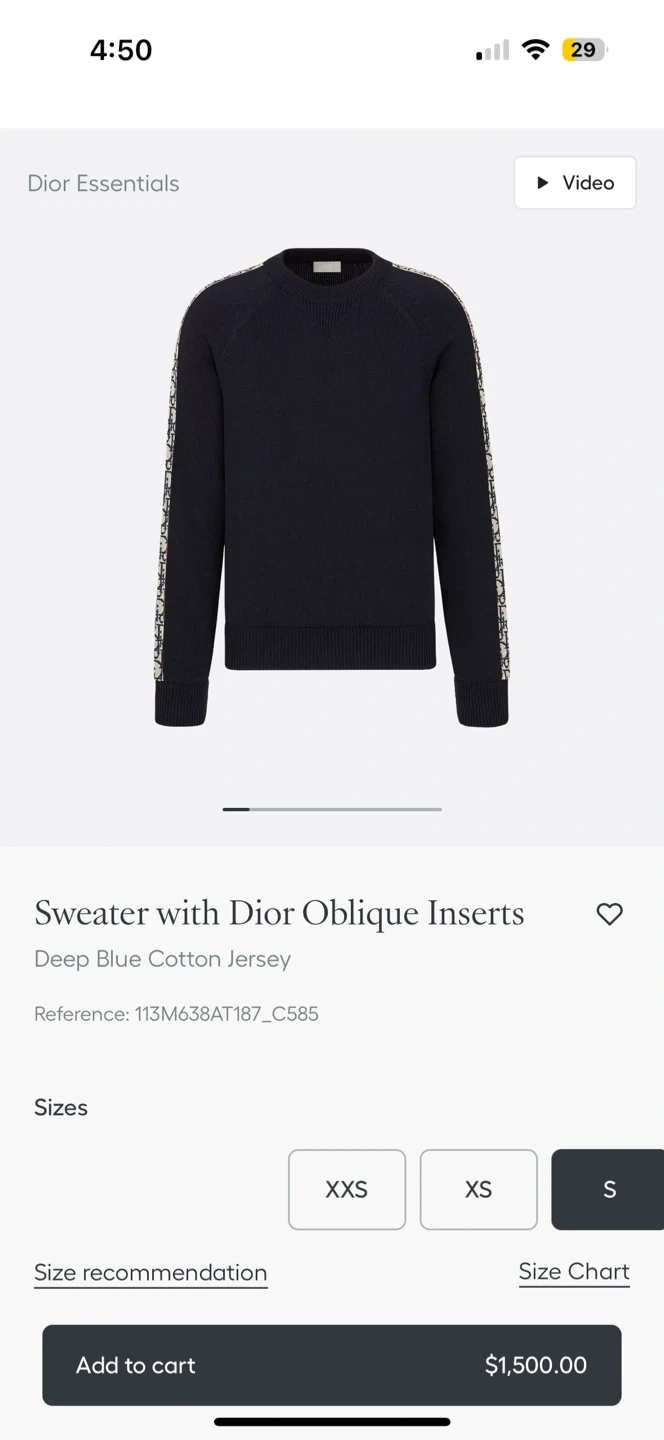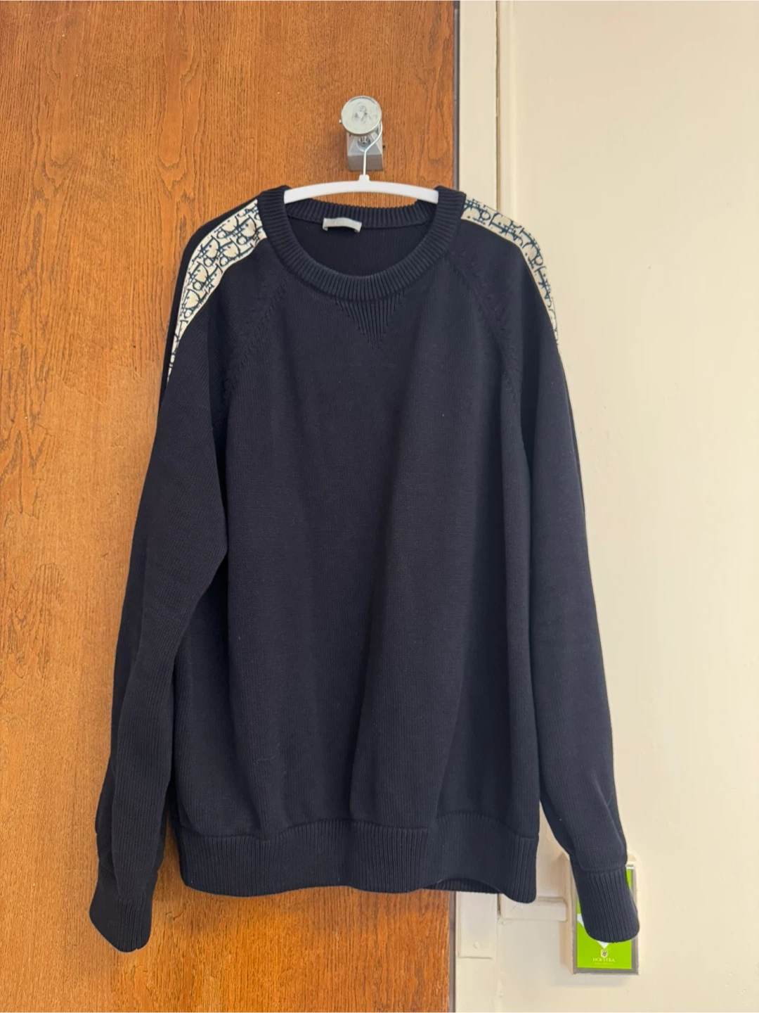 Sweater with Dior Oblique Inserts Deep Blue Cotton Jersey