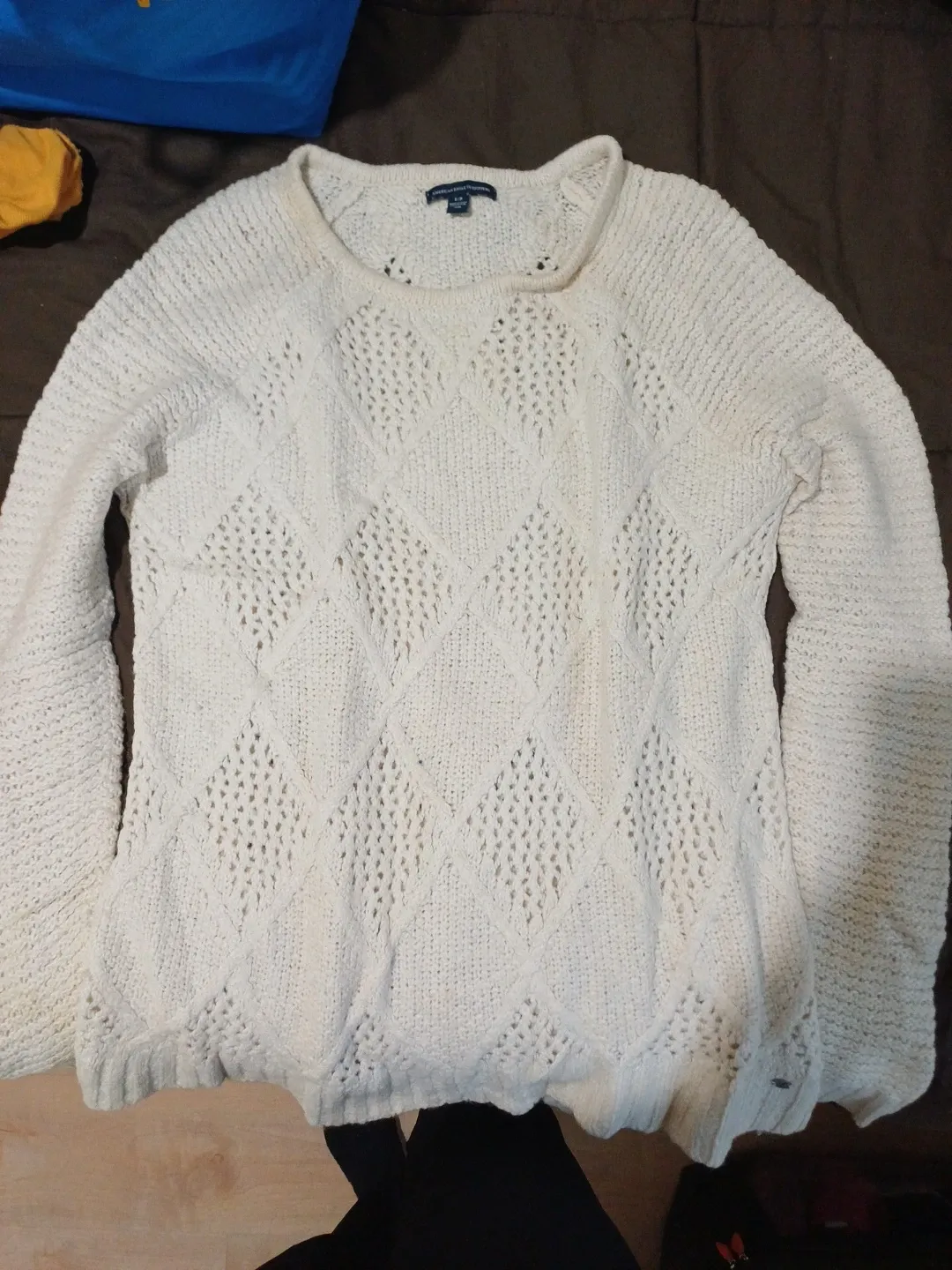 Cozy cream-coloured sweater from American Eagle Outfitters in size small. It's in good condition and ready to keep you warm!