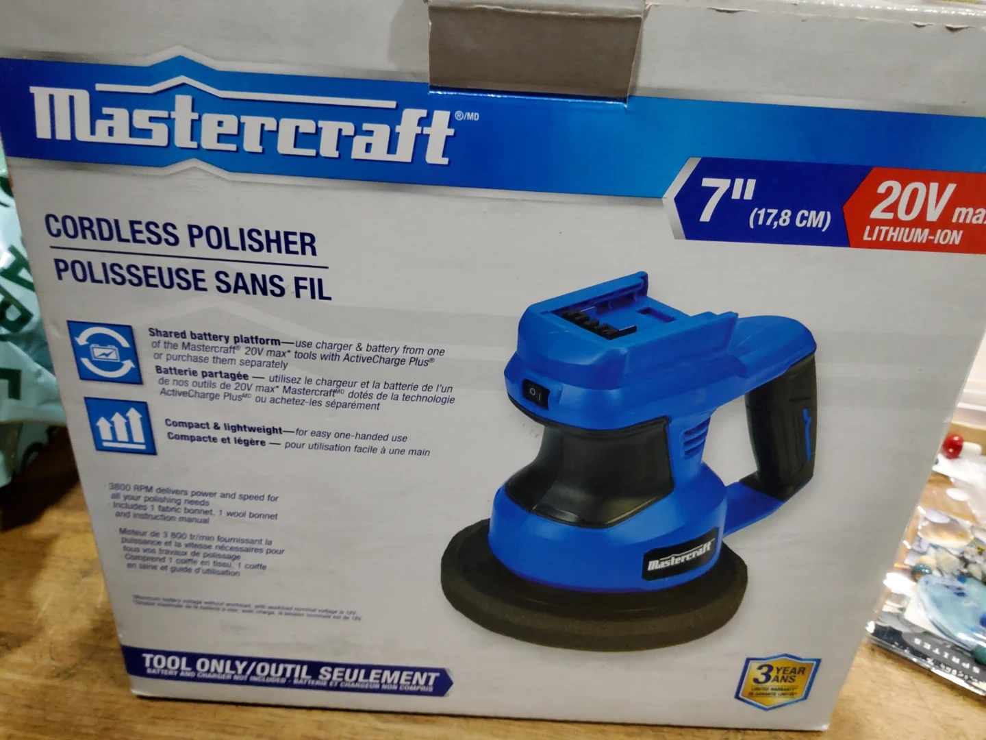 MASTERCRAFT 7" 20V CORDLESS POLISHER $55
