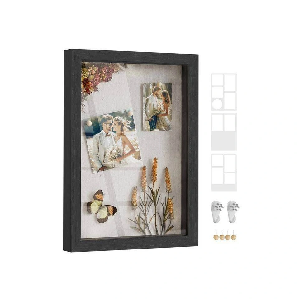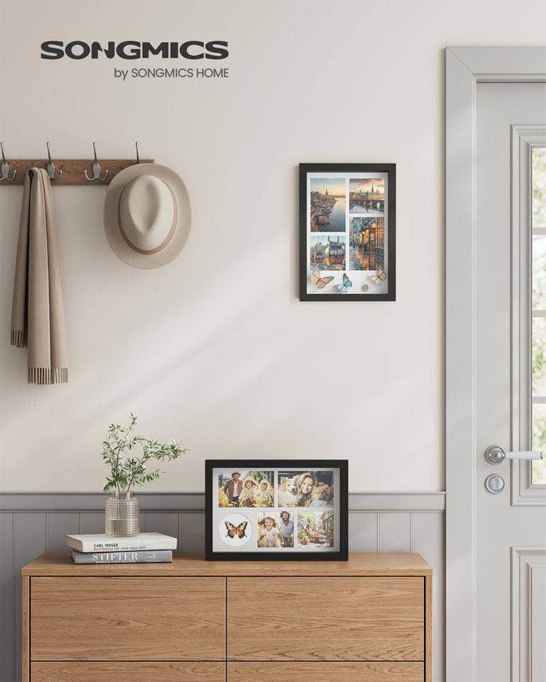 Brand new SONGMICS shadow box frame in sleek black, perfect for displaying keepsakes, memorabilia, or special photos. Stylish and modern, ideal for home or office décor.