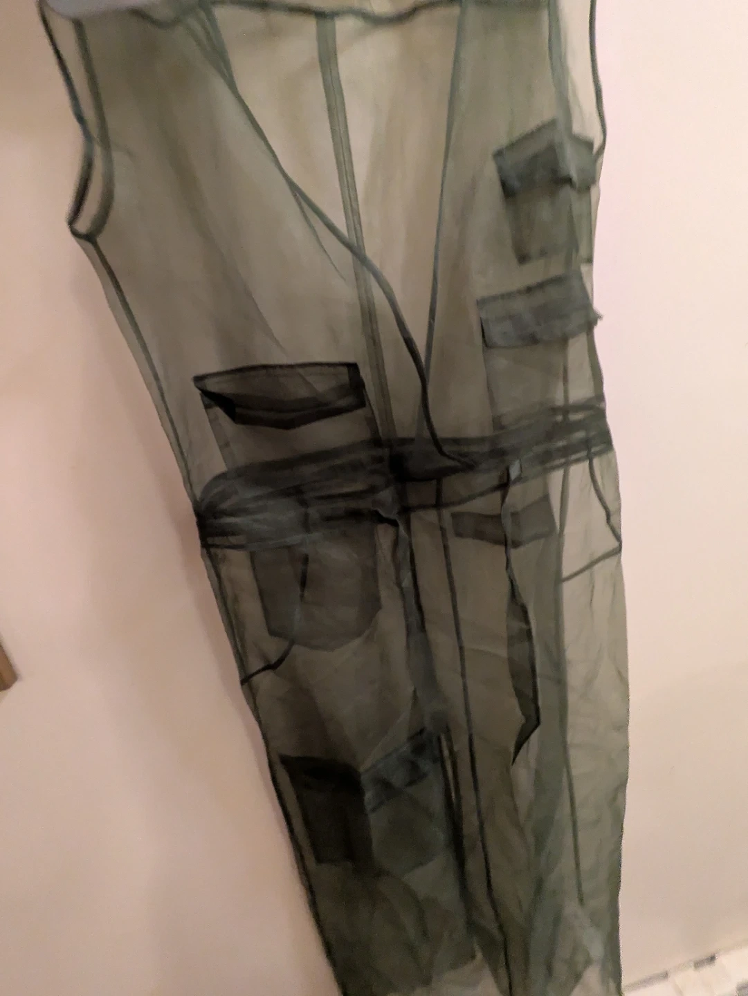 Selling a unique organza style green sheer vest that creates voluminous structure with its cool, see-through design. Perfect for layering or adding a unique touch to your outfit!