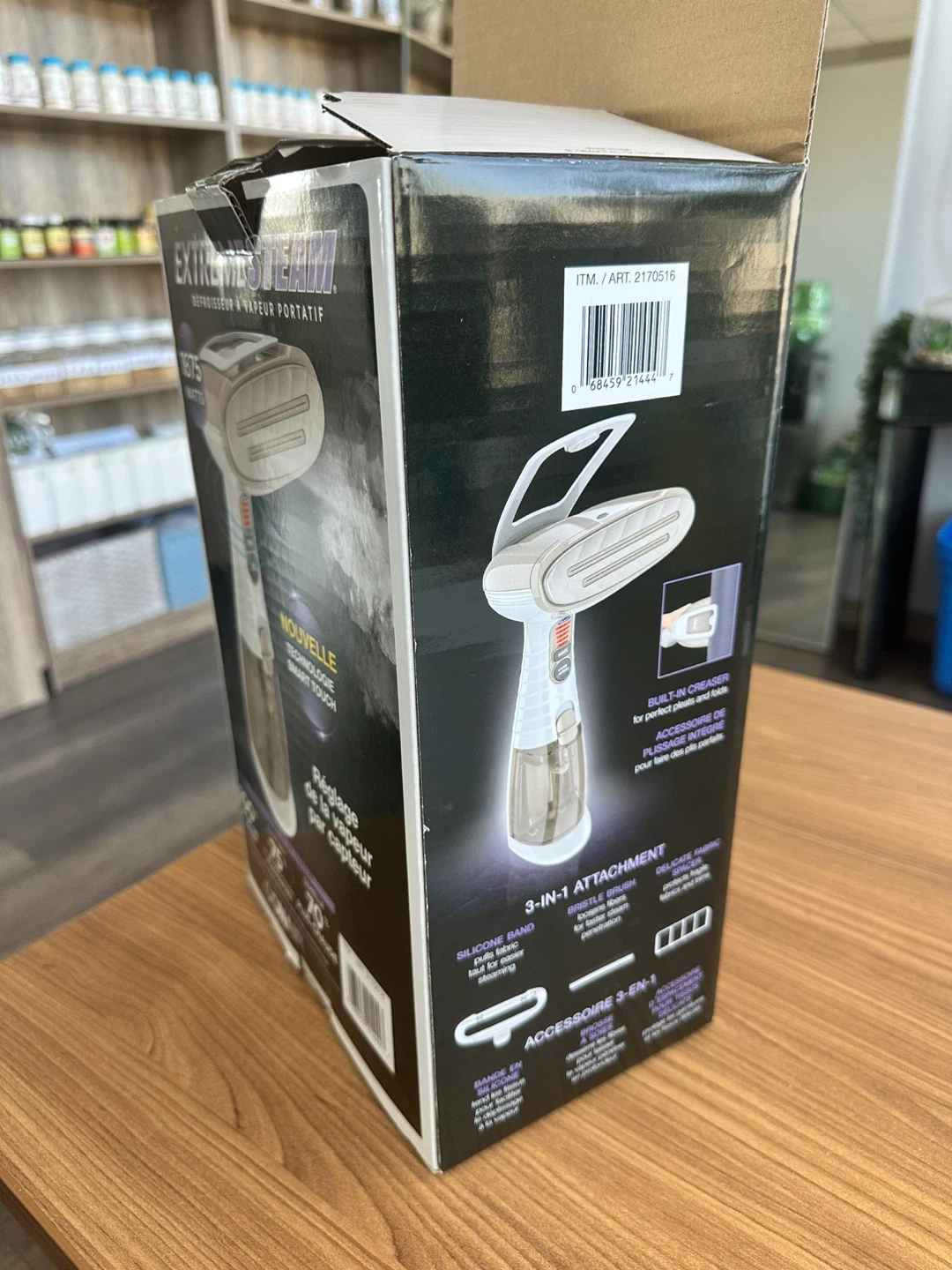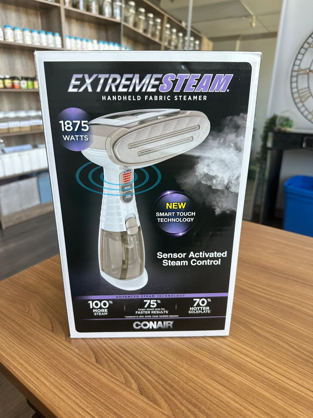 This Conair ExtremeSteam handheld fabric steamer is great for removing wrinkles quickly. It features sensor activated steam control and a built-in creaser. It comes with a 3-in-1 attachment for different fabric needs.