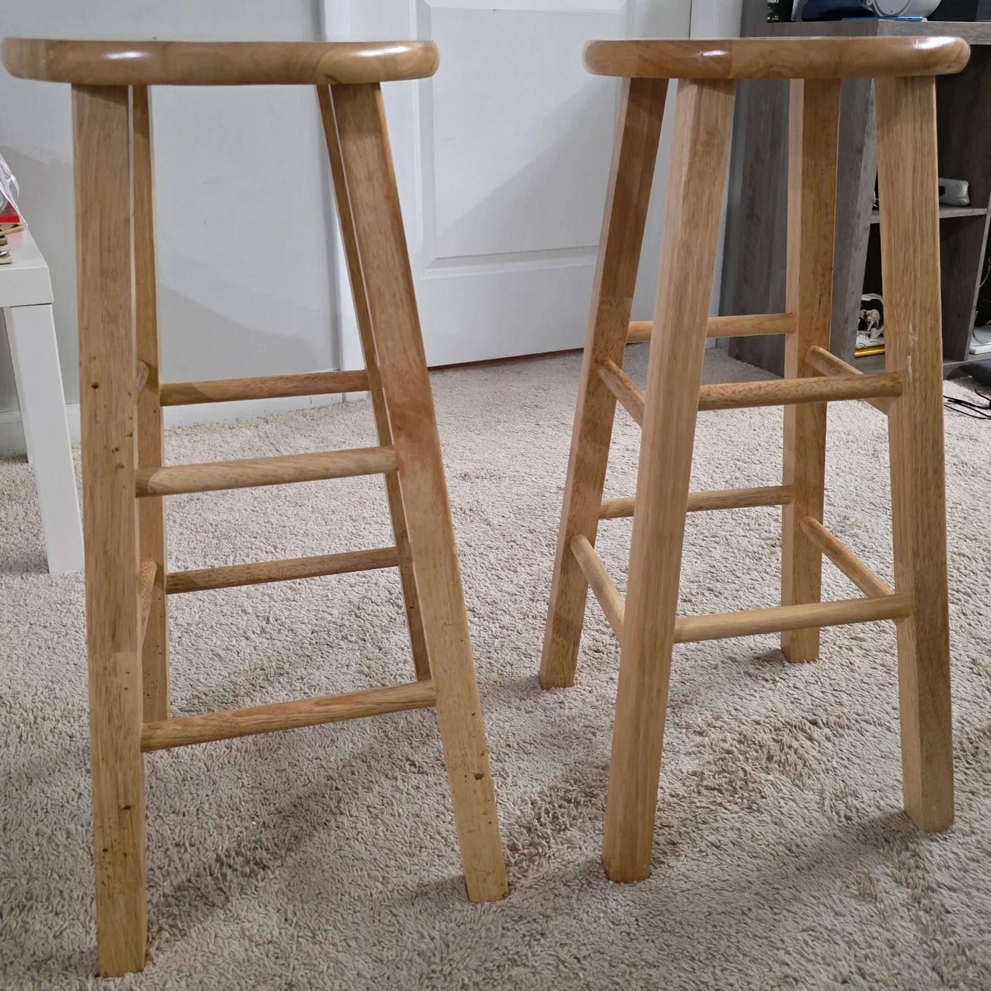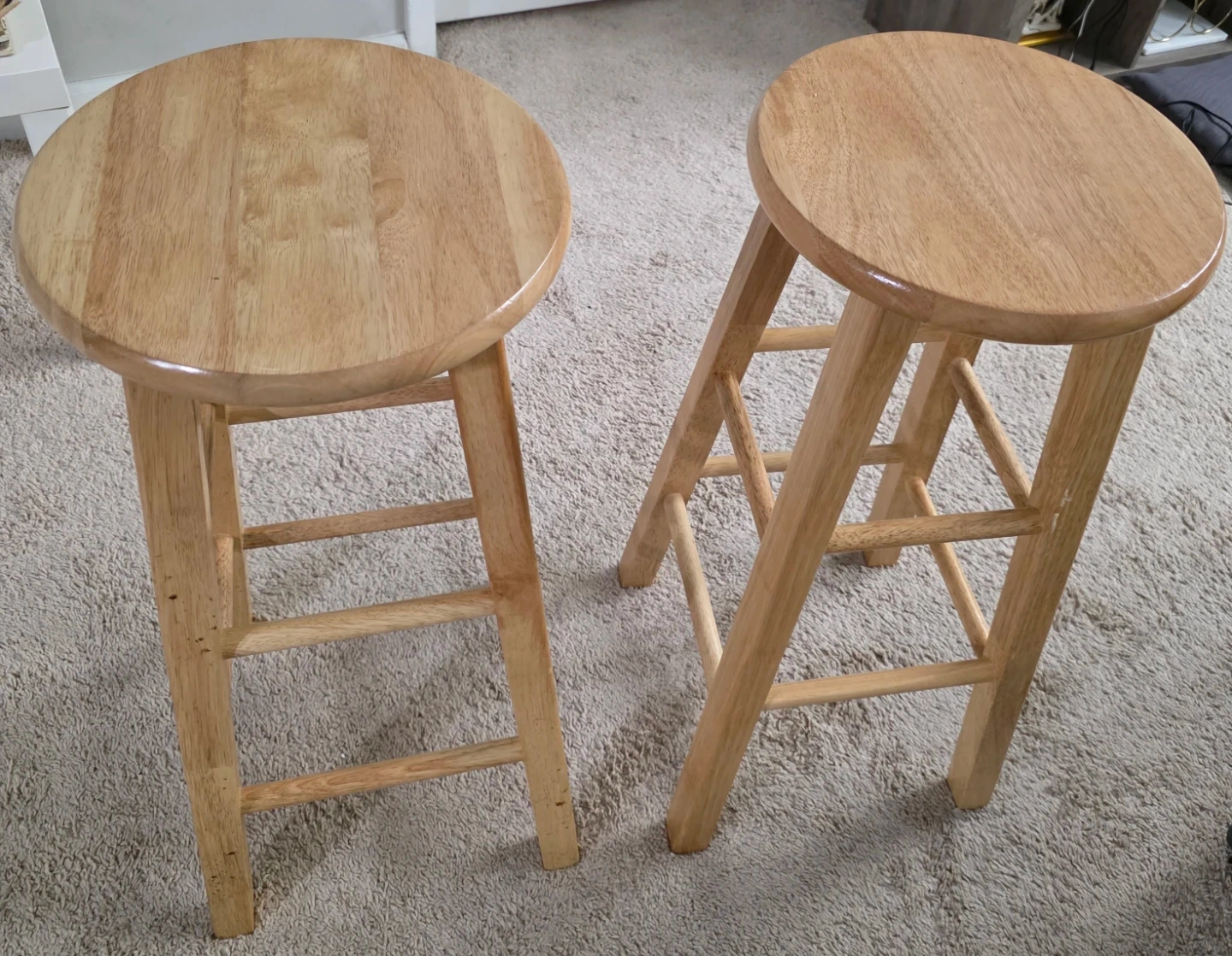 Selling a set of two wooden bar stools! They're in great condition and ready to add some charm to your kitchen or bar area. Perfect for extra seating and casual dining