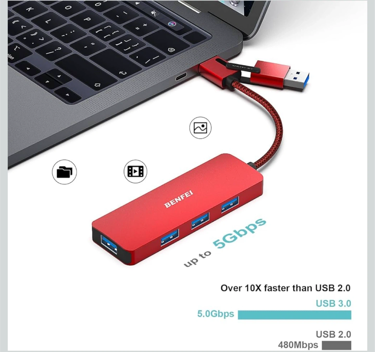 BENFEI 4-in-1 USB Hub - Red