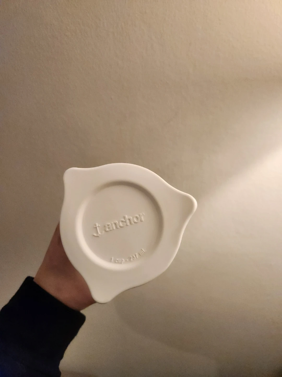 Selling an Anchor Hocking measuring cup. It's glass and it measures up to 1-cup or 250ml with (3) handy pouring spouts.