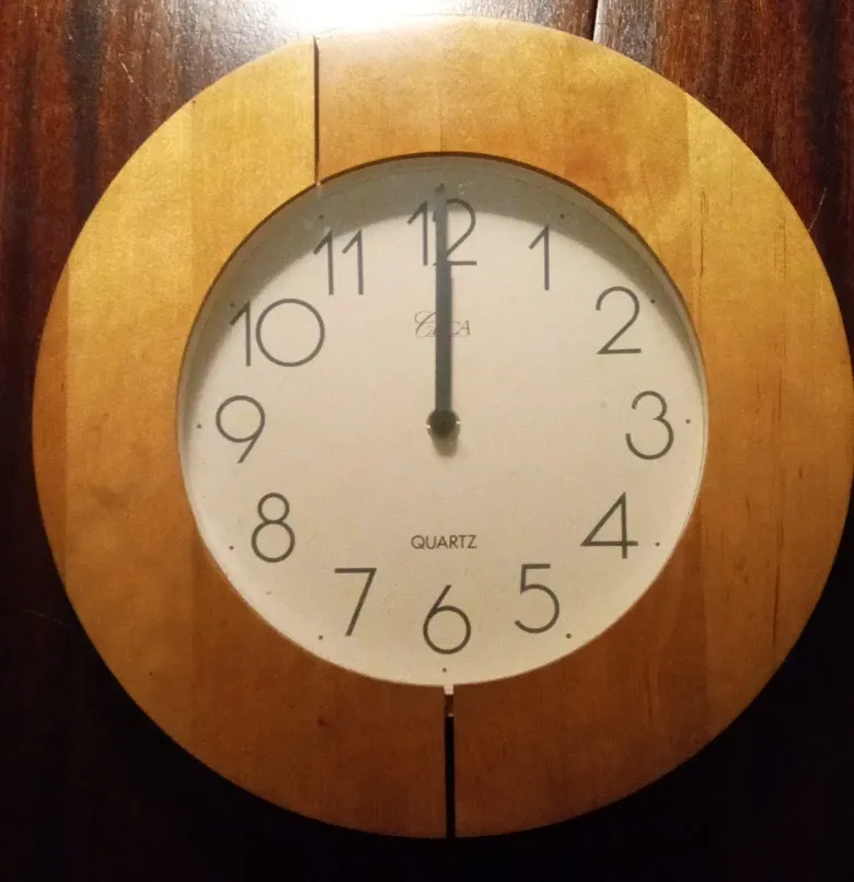 Selling a Circa Quartz wall clock! It has a classic design with a wooden frame and easy-to-read numbers. Perfect for adding a touch of warmth to any room